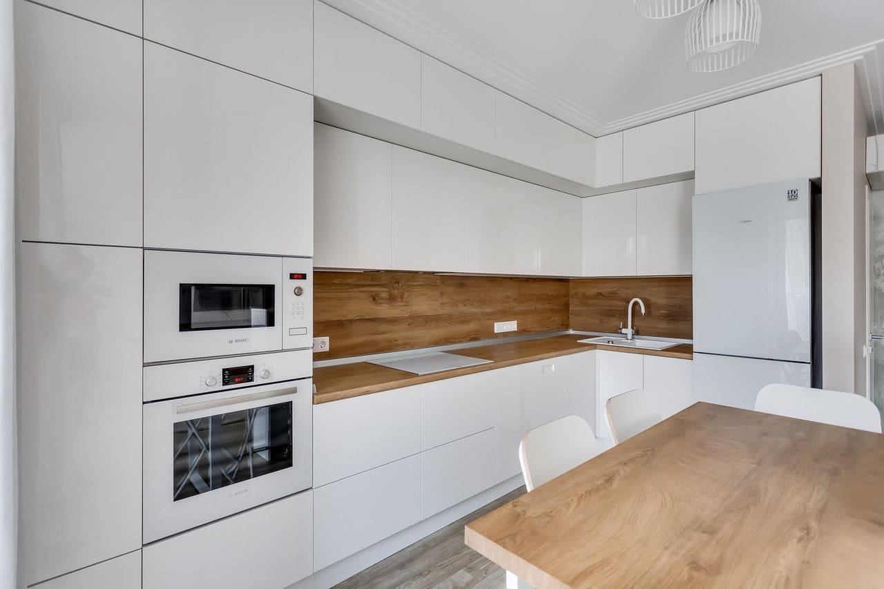 Кухня белая с деревом