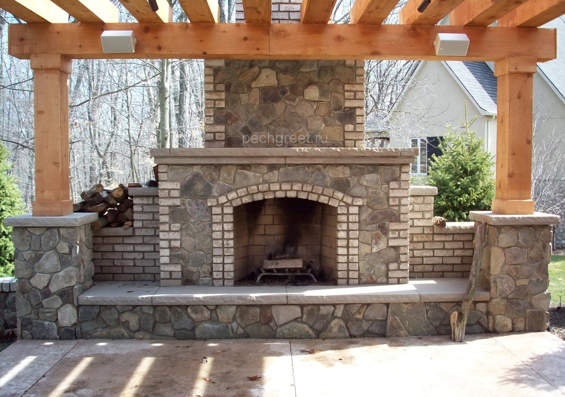 Уличный камин в беседке