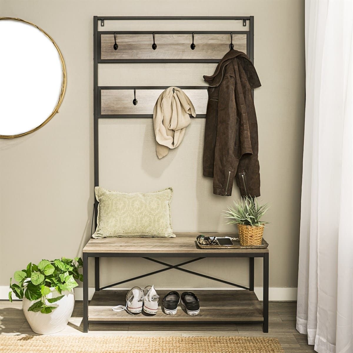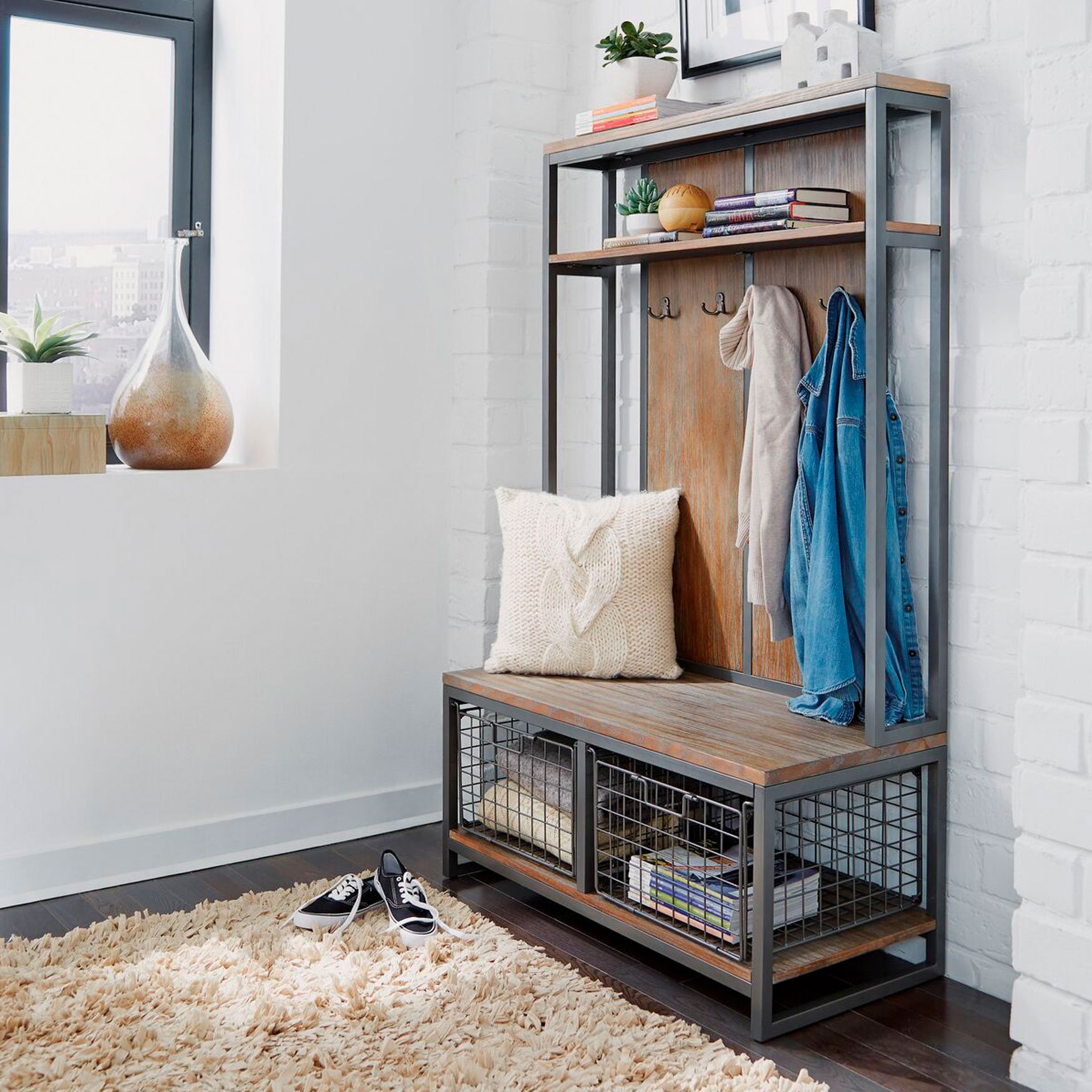 Entry Bench with Coat Rack