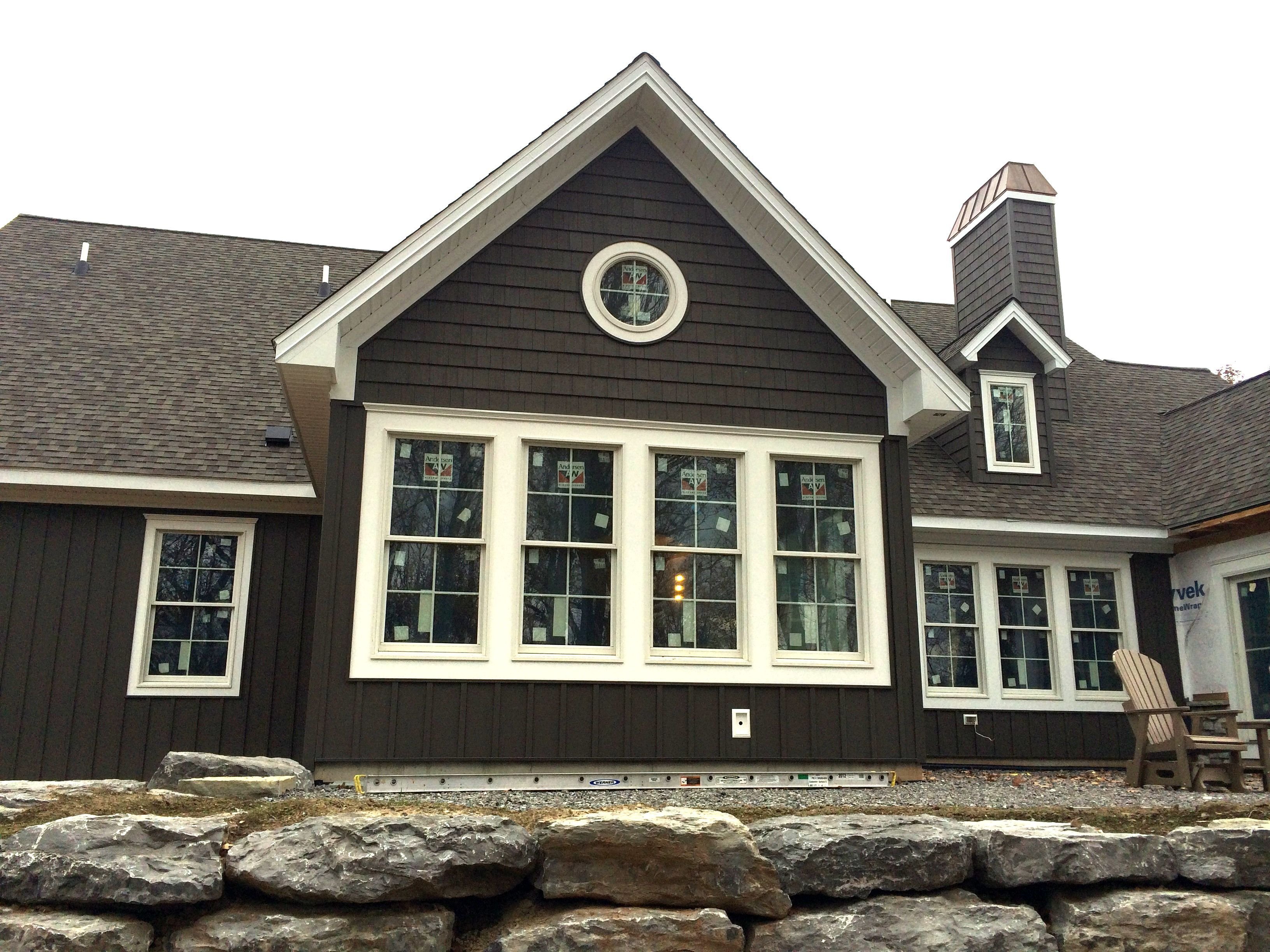 Фасад с коричневыми окнами