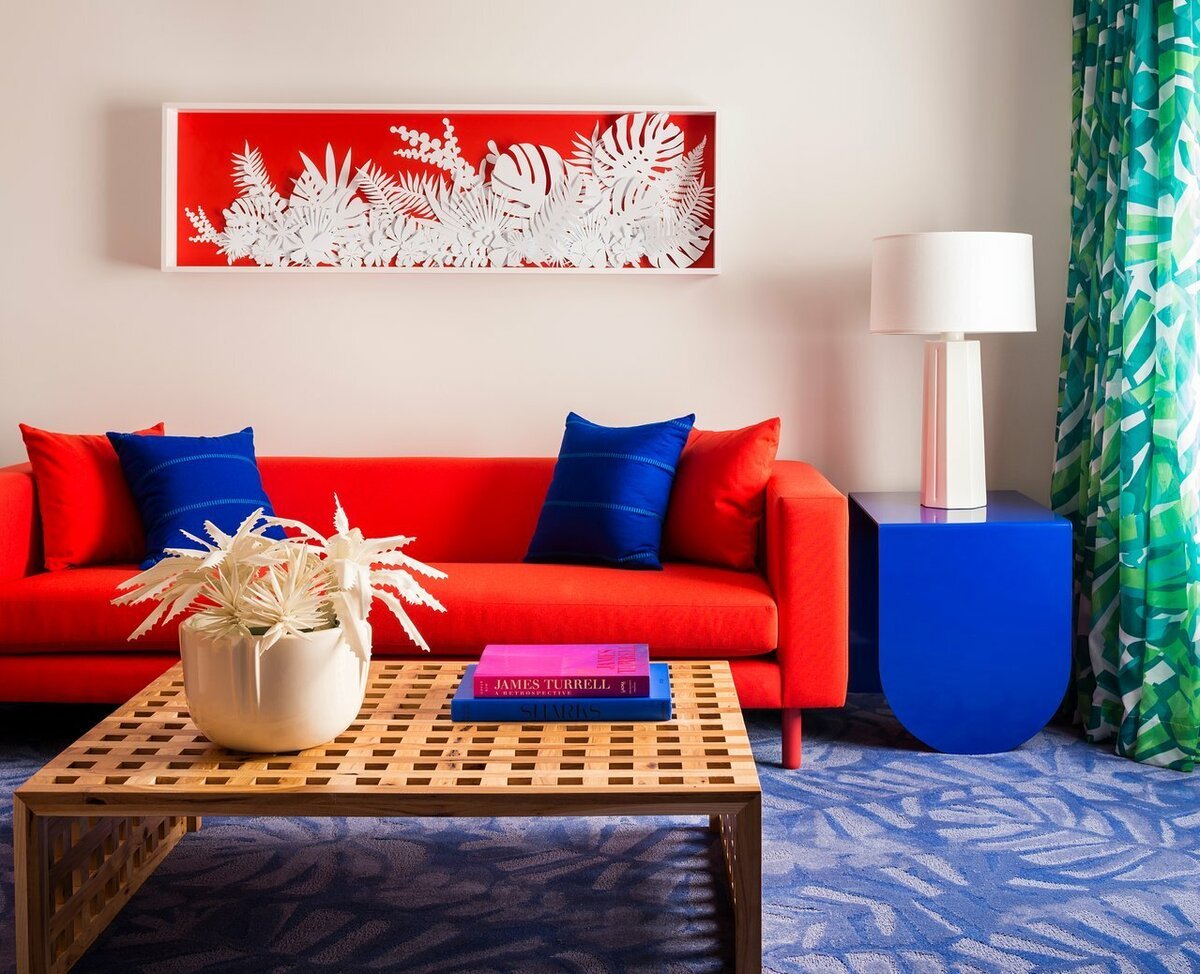 Синий и коралловый в интерьере