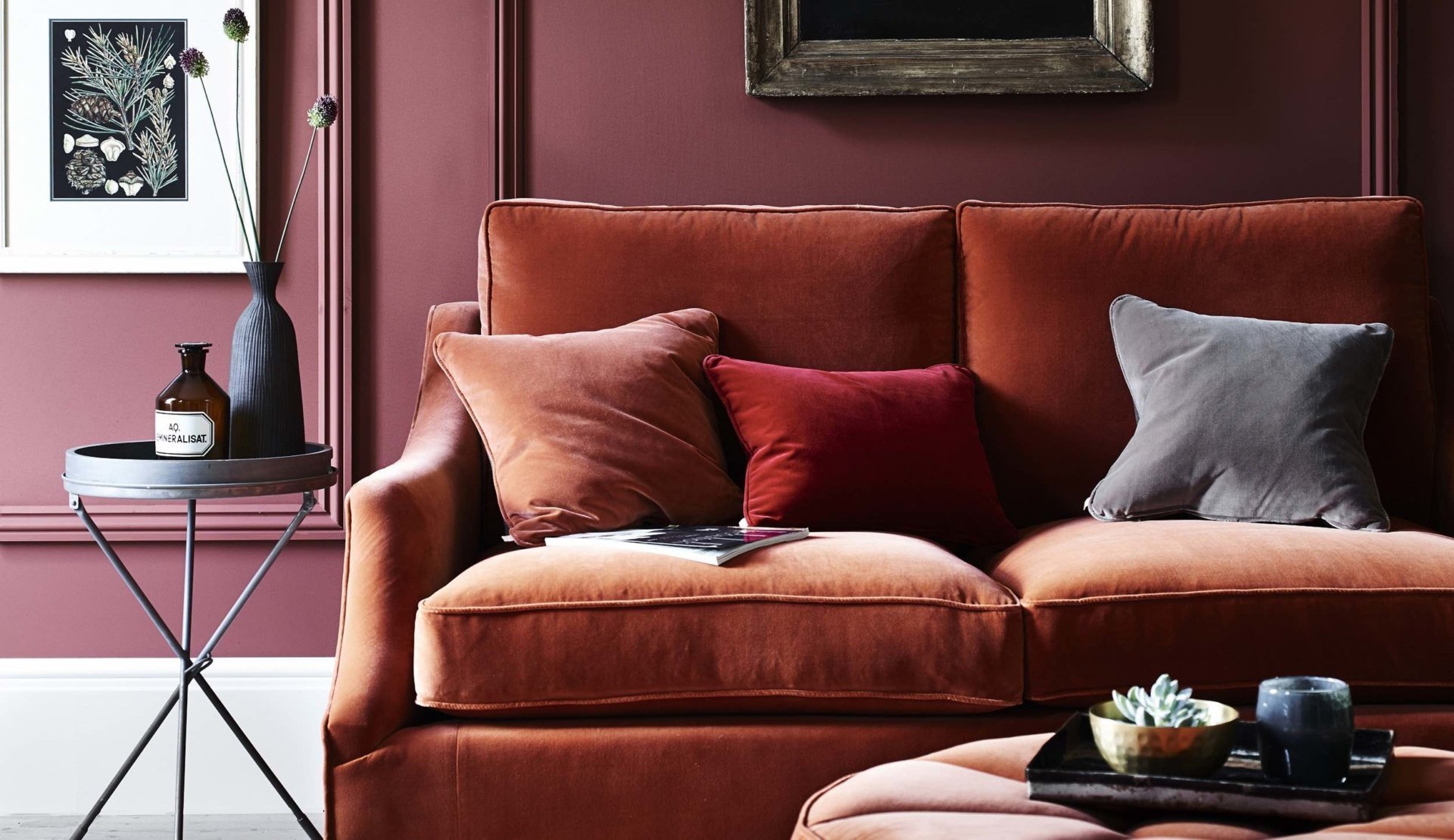 Терракотовый диван в интерьере