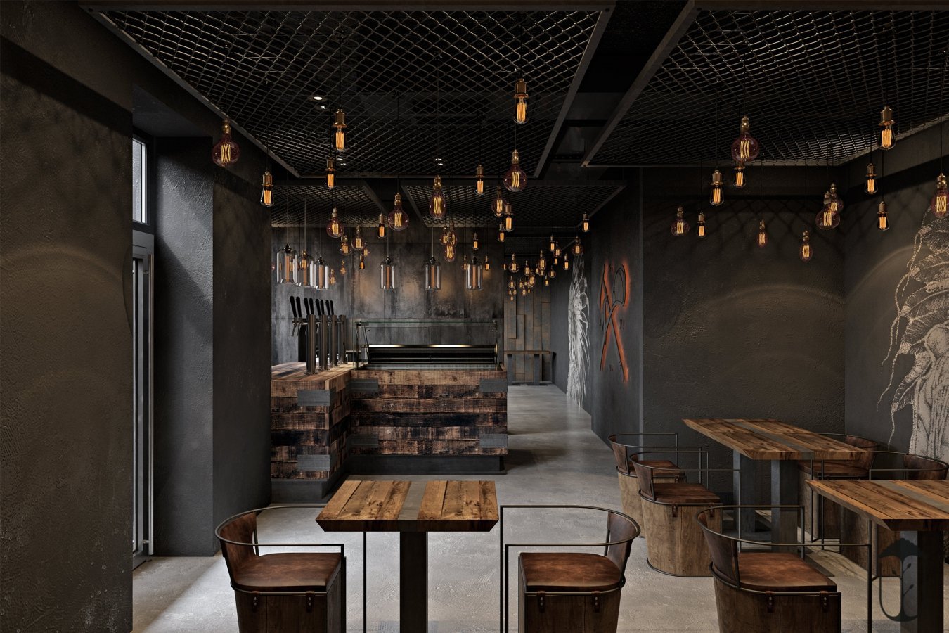 Брутализм в интерьере бара