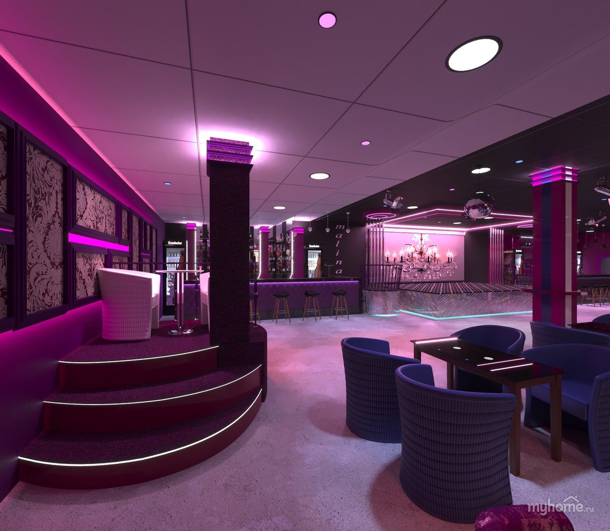 Дизайн двухэтажного ночного клуба