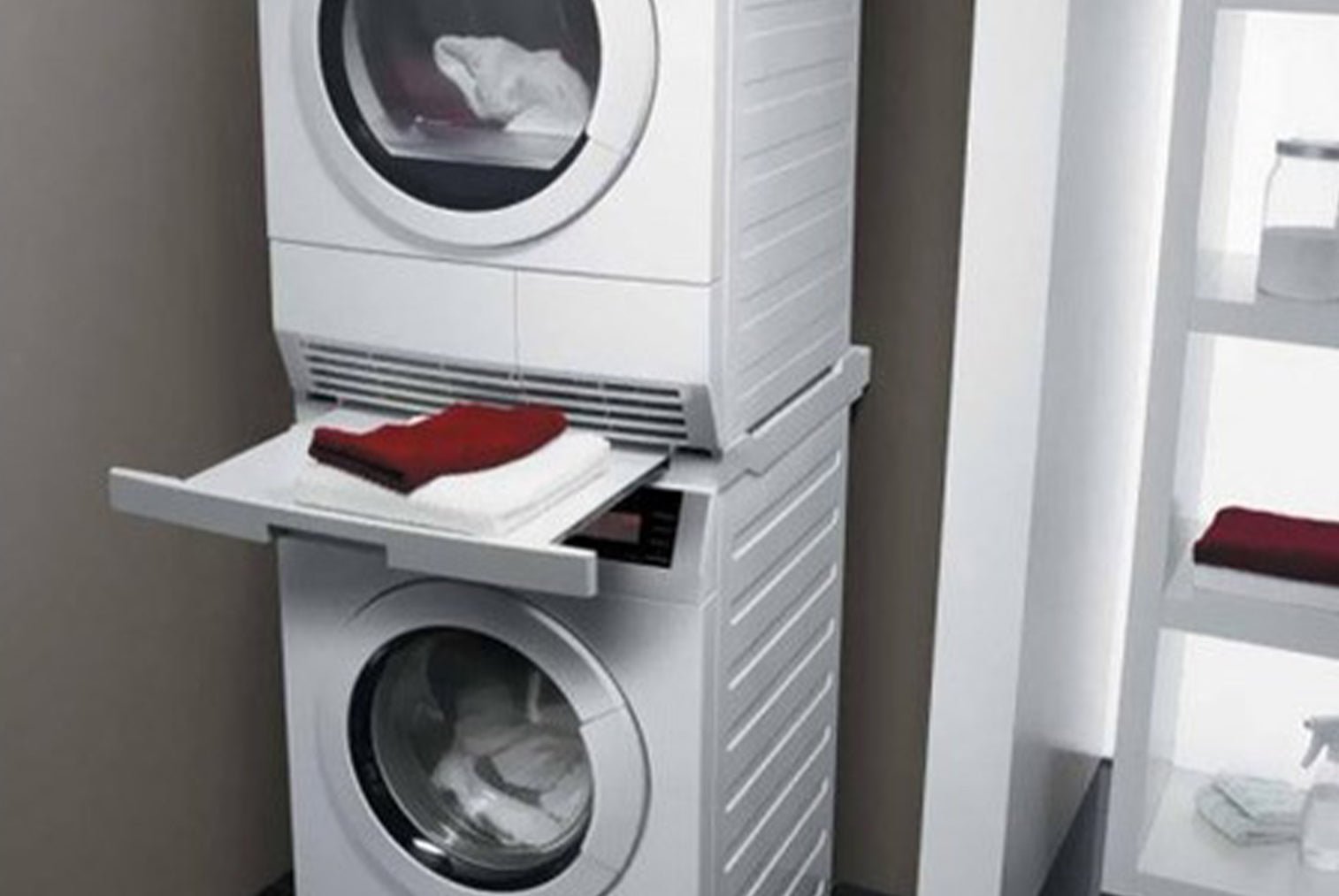 Выдвижная полка Asko hdb1153t с стиральной и сушильной машиной в колонку