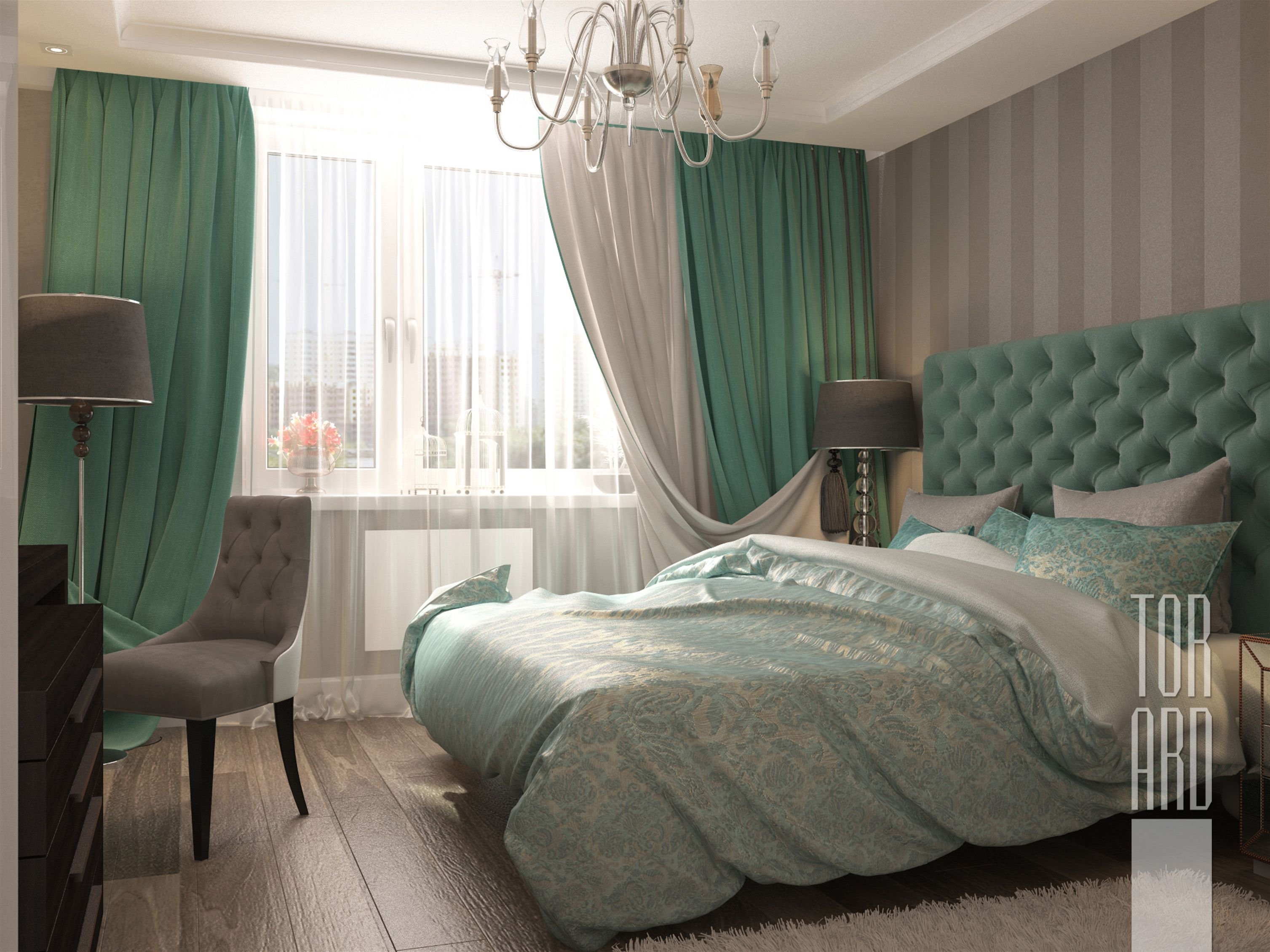 Спальня в цвете бирюзово-зеленый