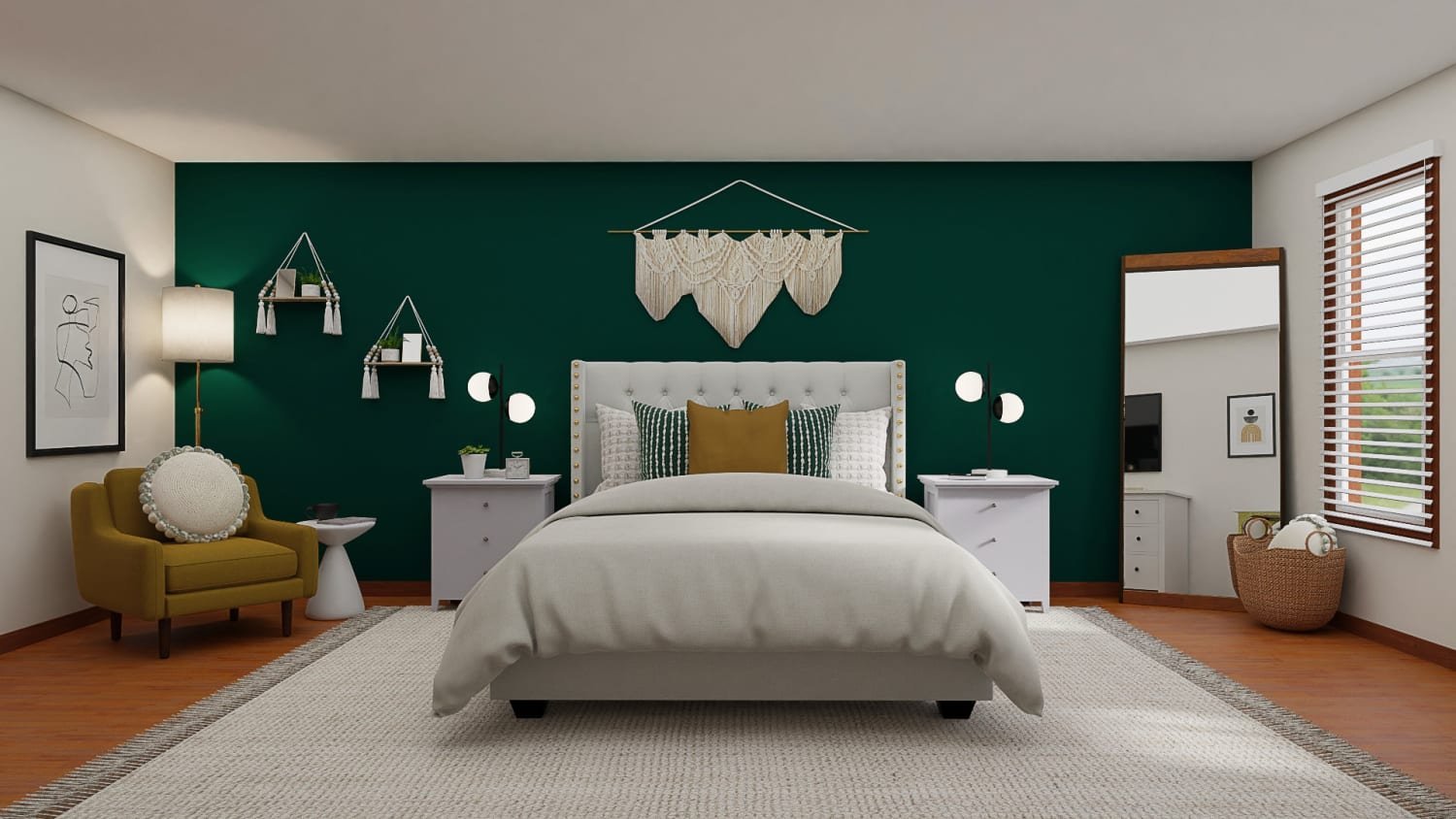 Спальня с изумрудными акцентами