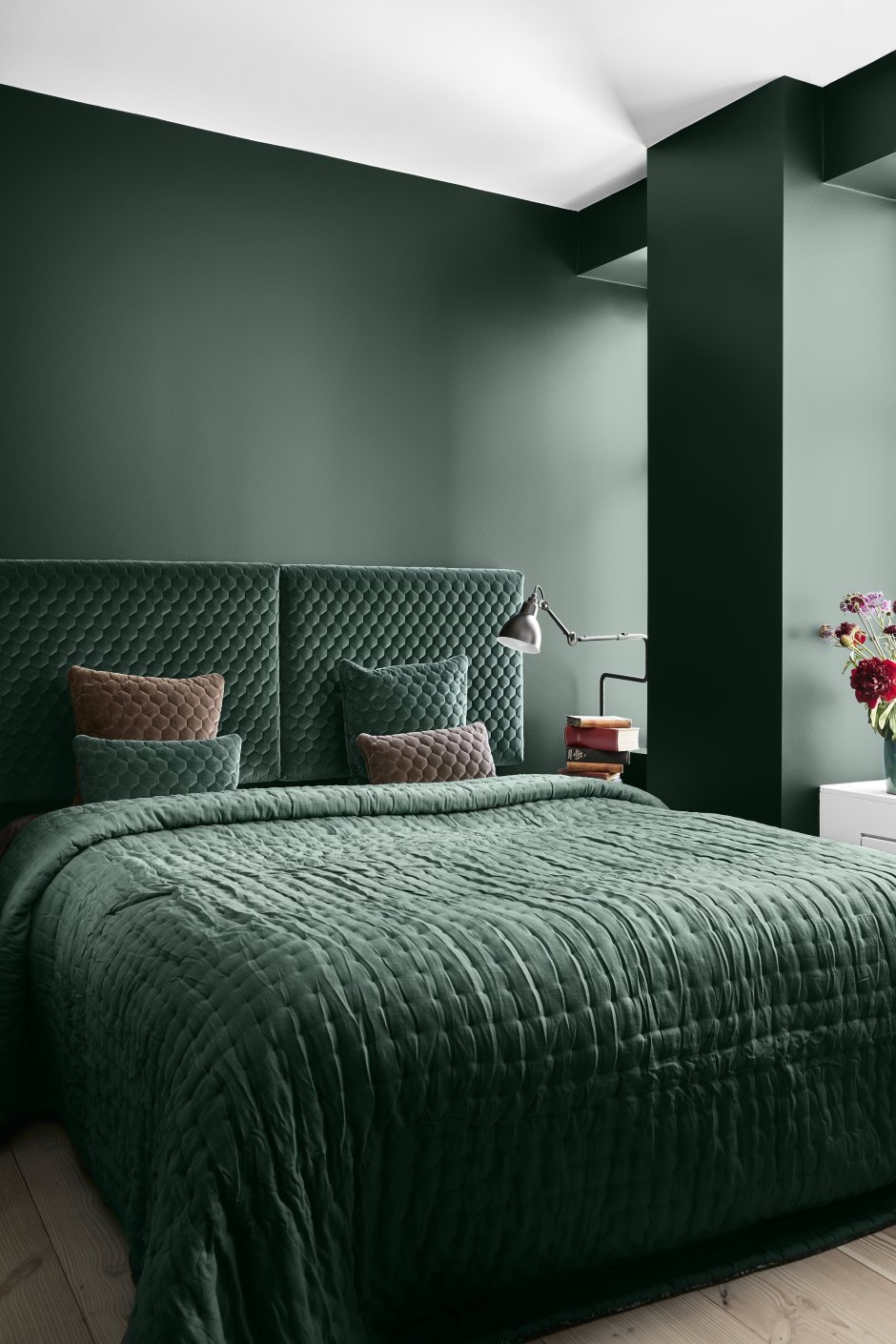 Изумрудные стены в спальне