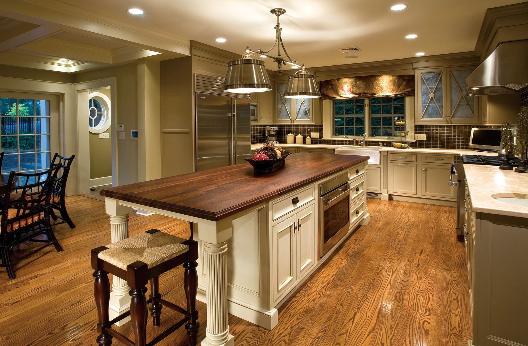 Кухня с островом в загородном доме