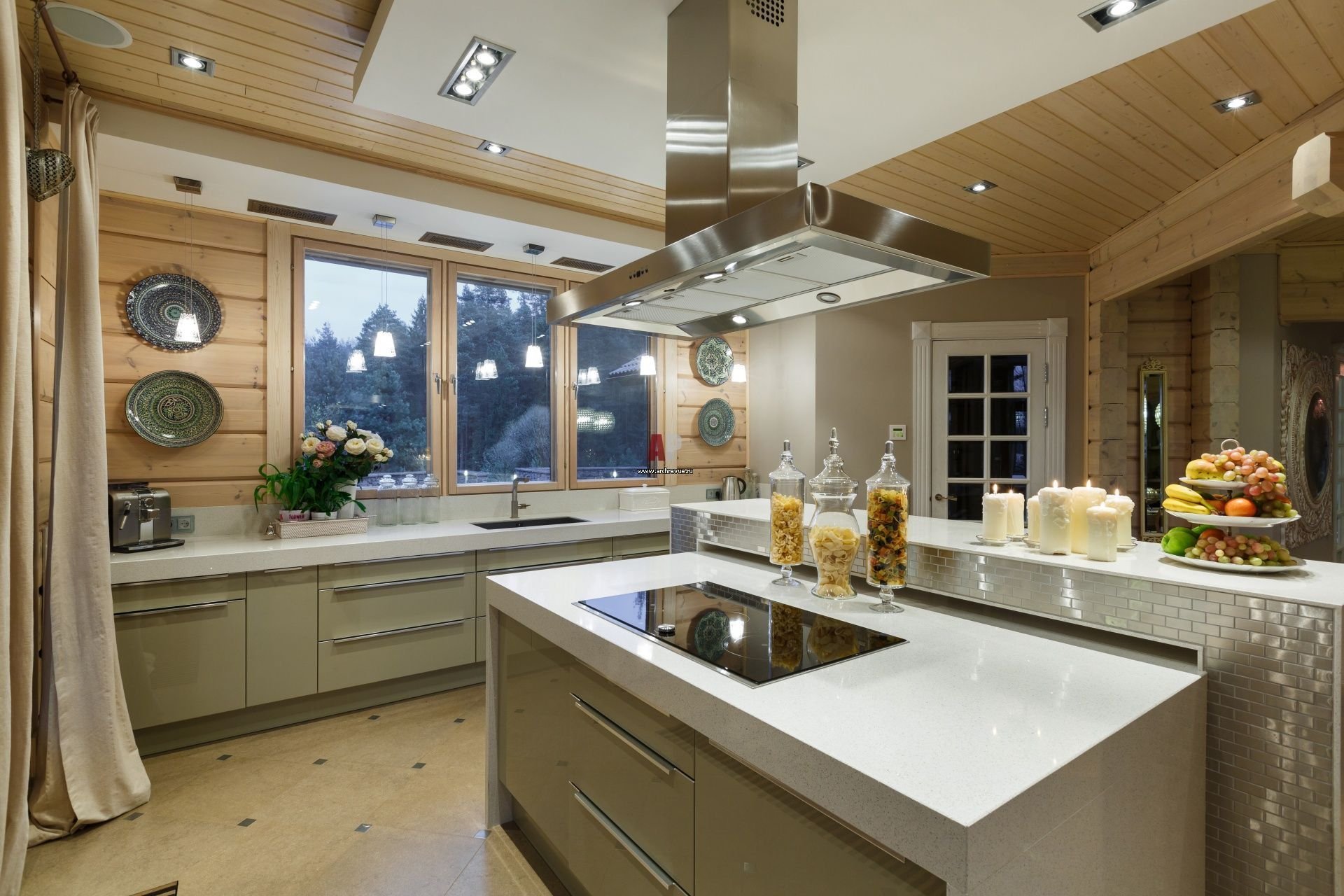 Кухни с островом в бревенчатом доме