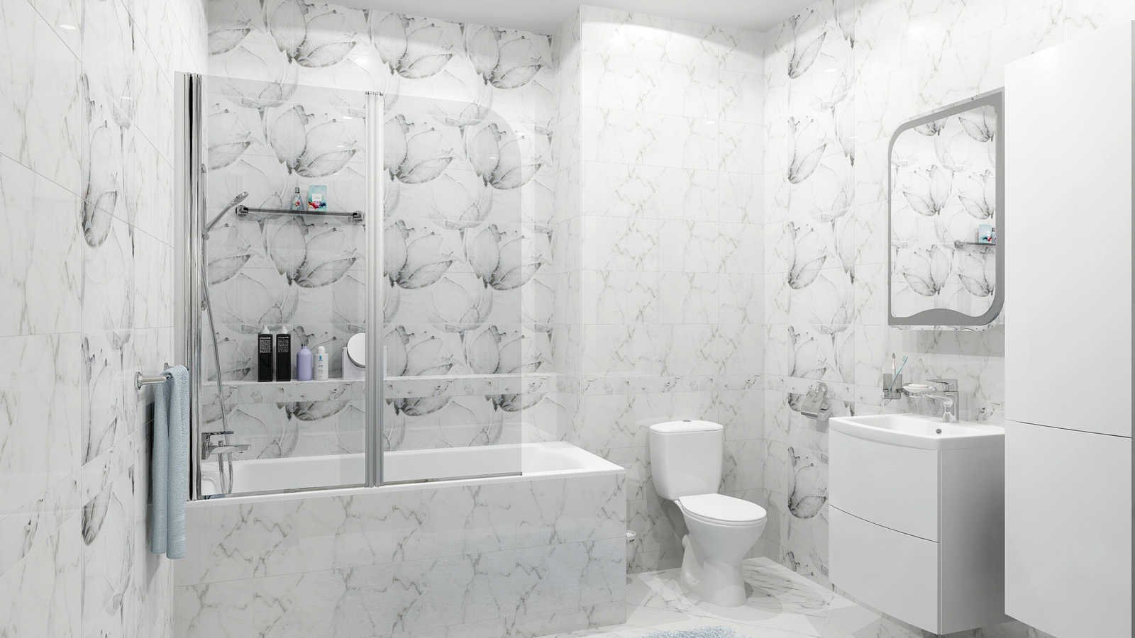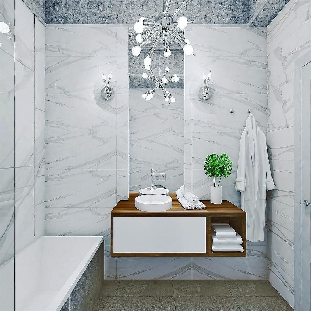 Маленькая ванная белый мрамор