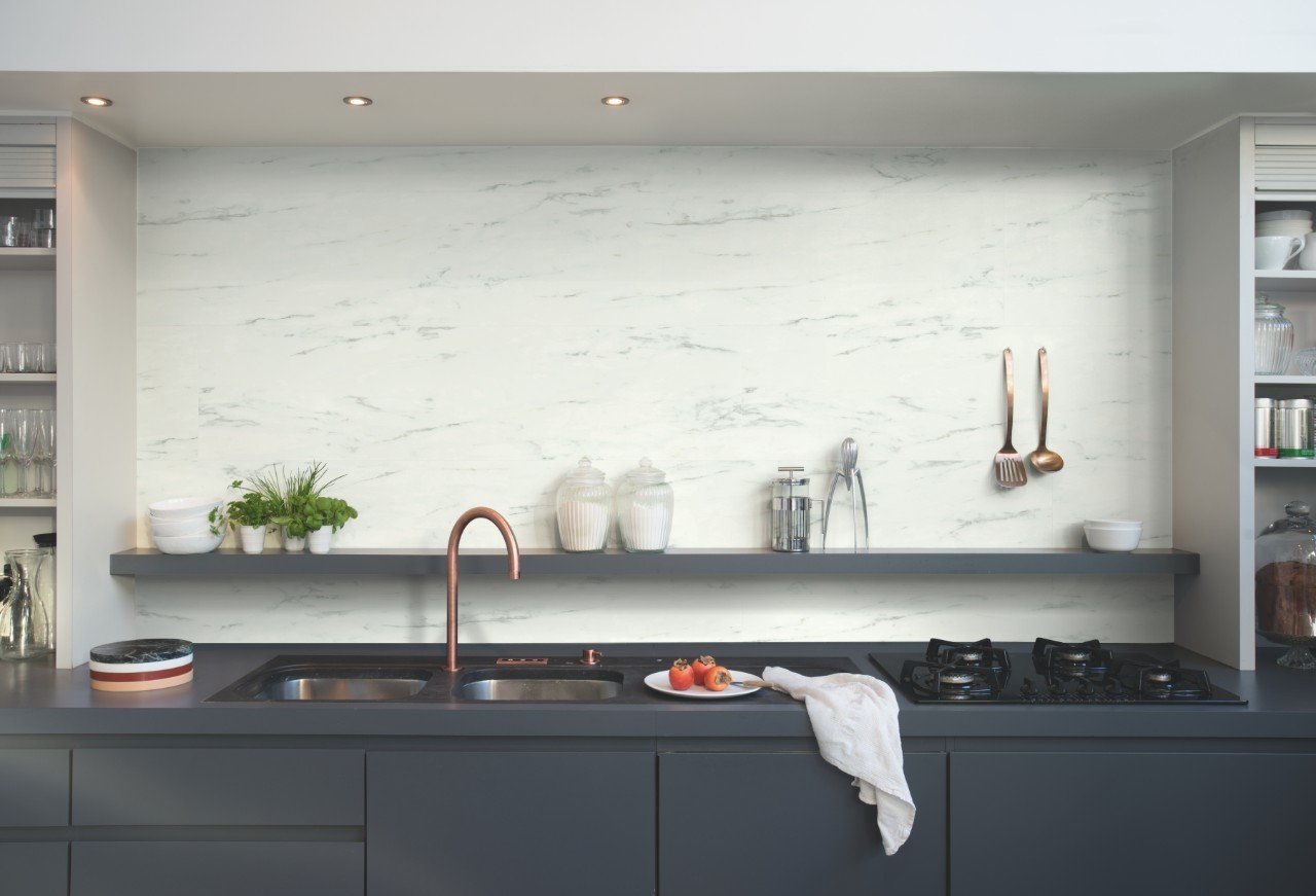Фартук для кухни мрамор белый