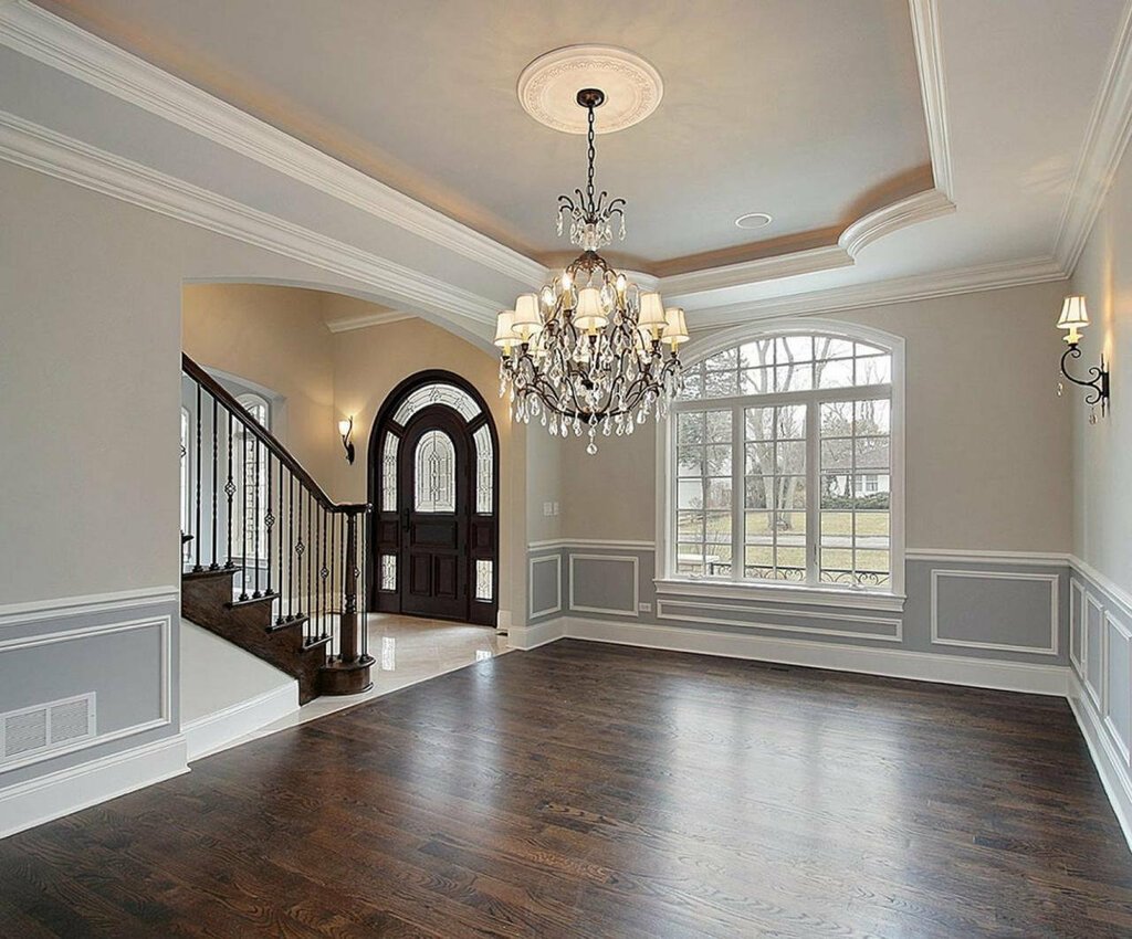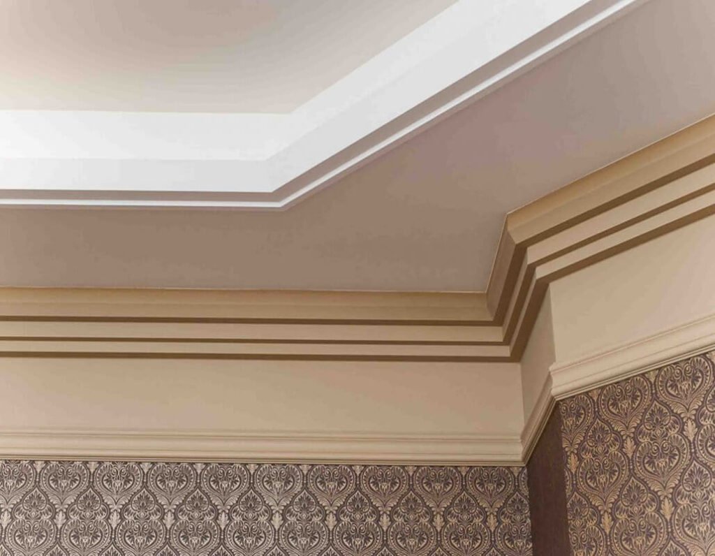 Широкий потолочный молдинг в интерьере