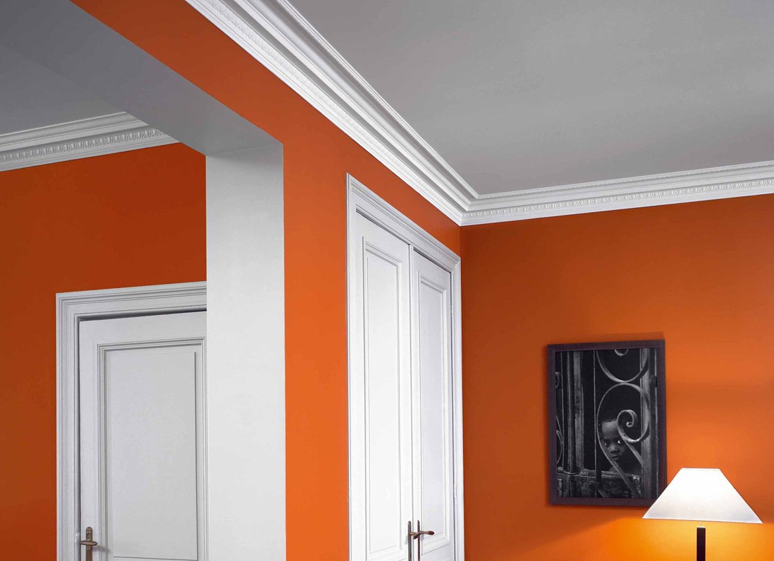 Крашеный потолочный плинтус в интерьере