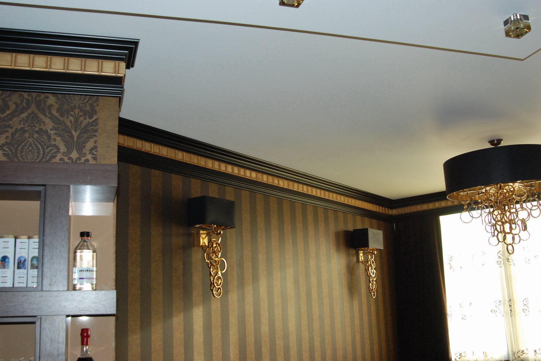 Широкий потолочный плинтус в интерьере