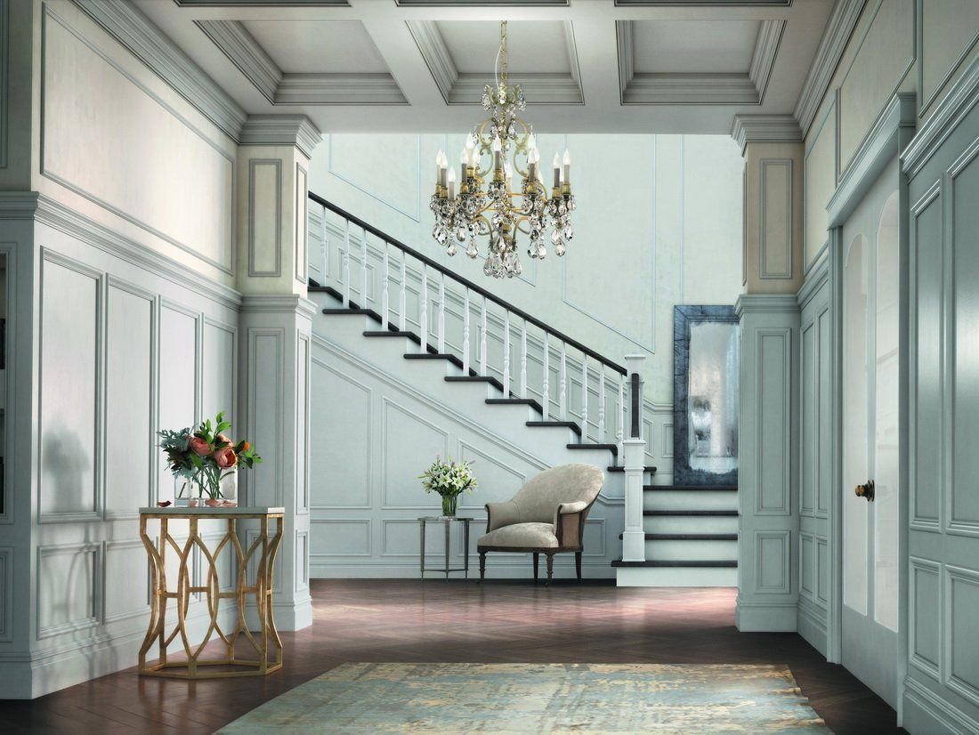Молдинги в холле с лестницей