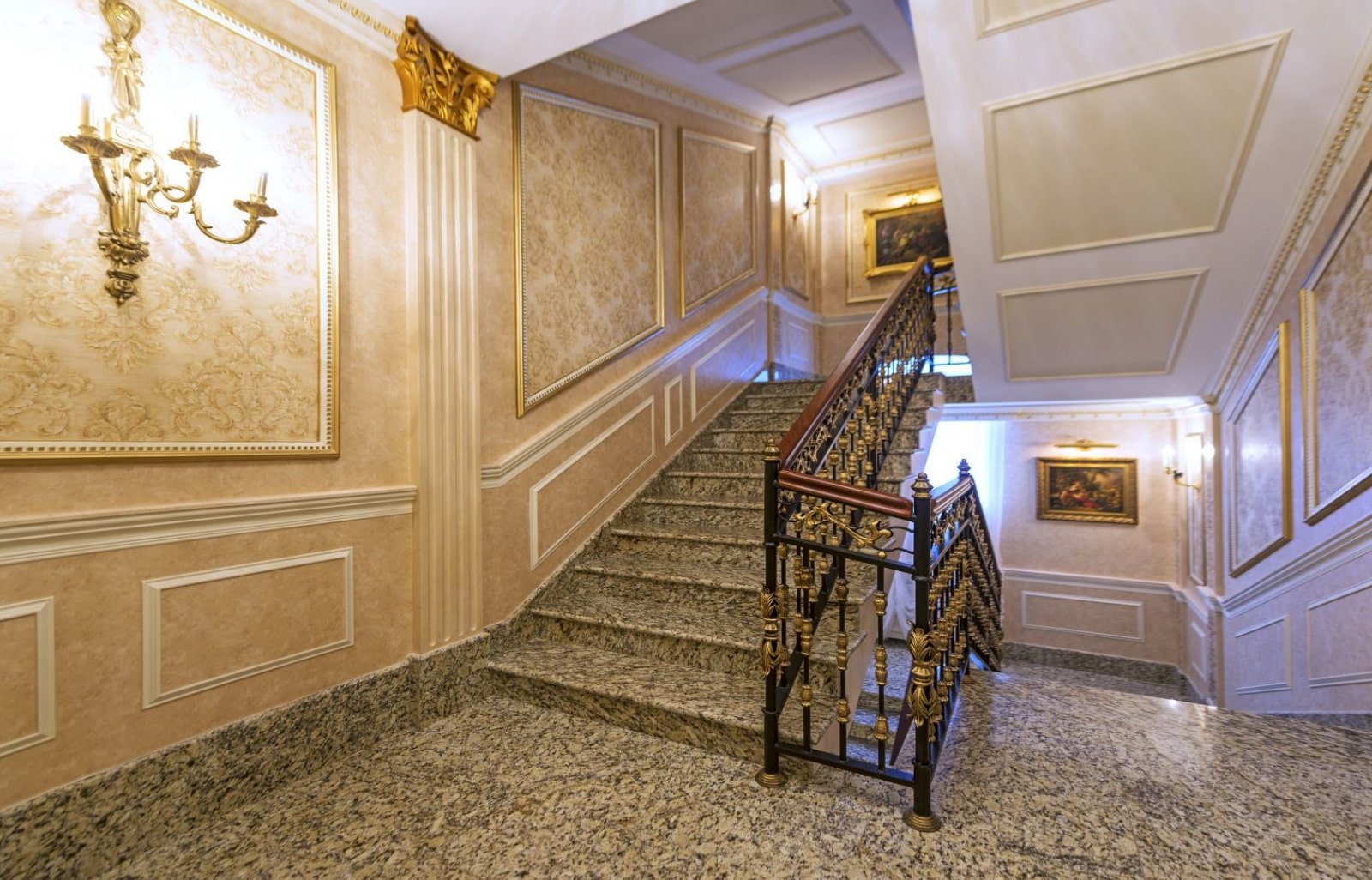 Молдинги на стенах лестницы