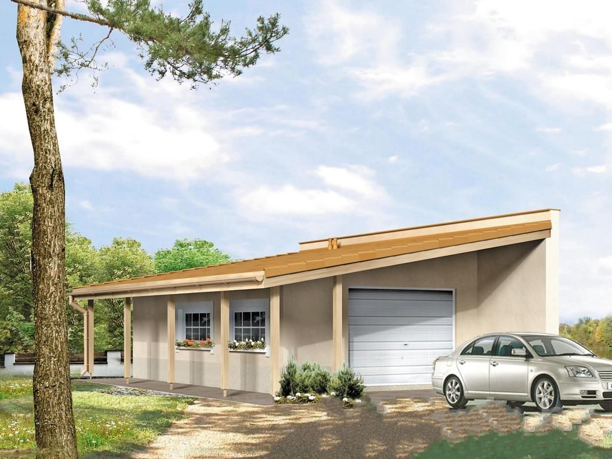 Дом с односкатной крышей и гаражом
