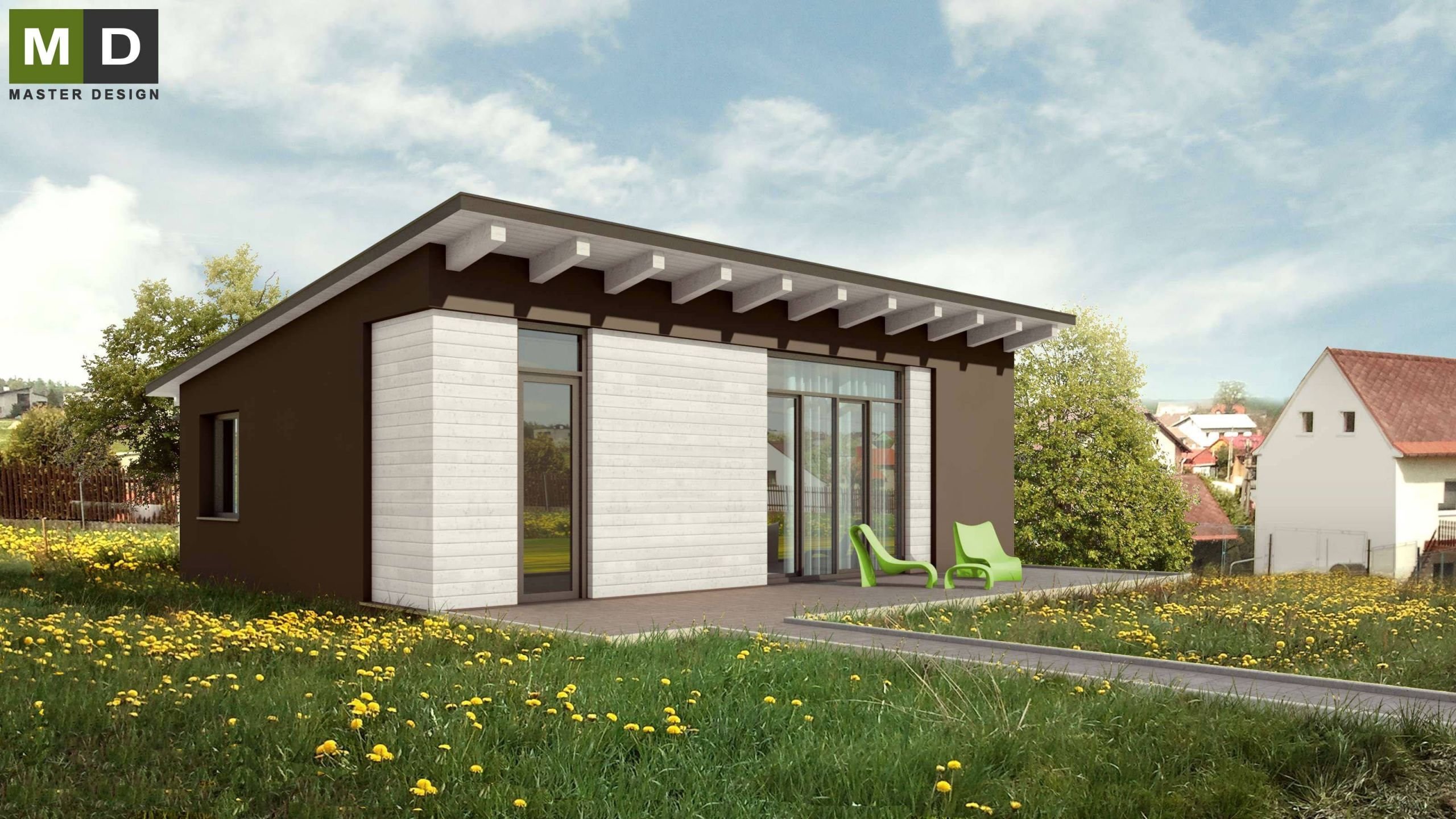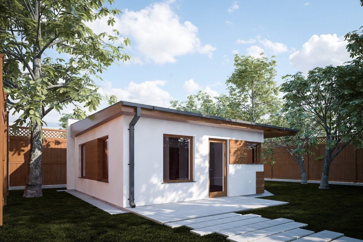 Мини дом с плоской крышей одноэтажный