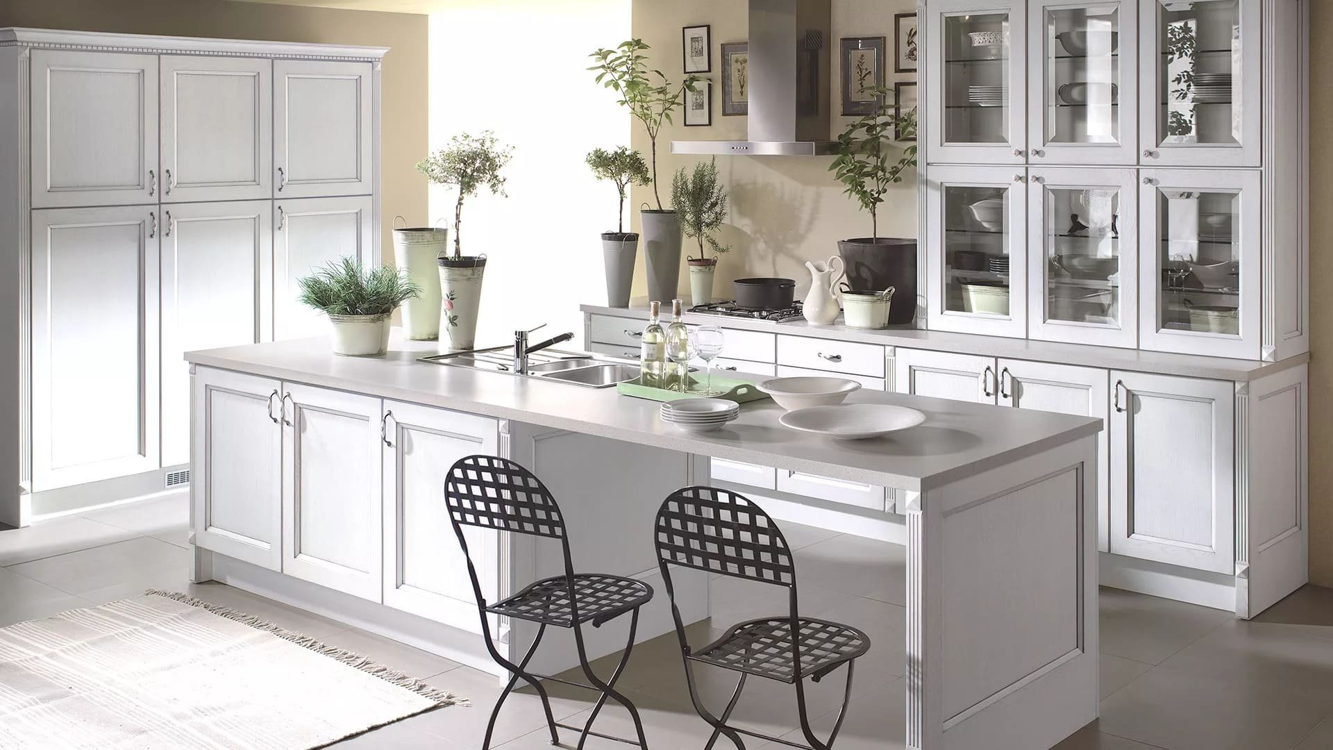 Кухня без навесных шкафов Кантри