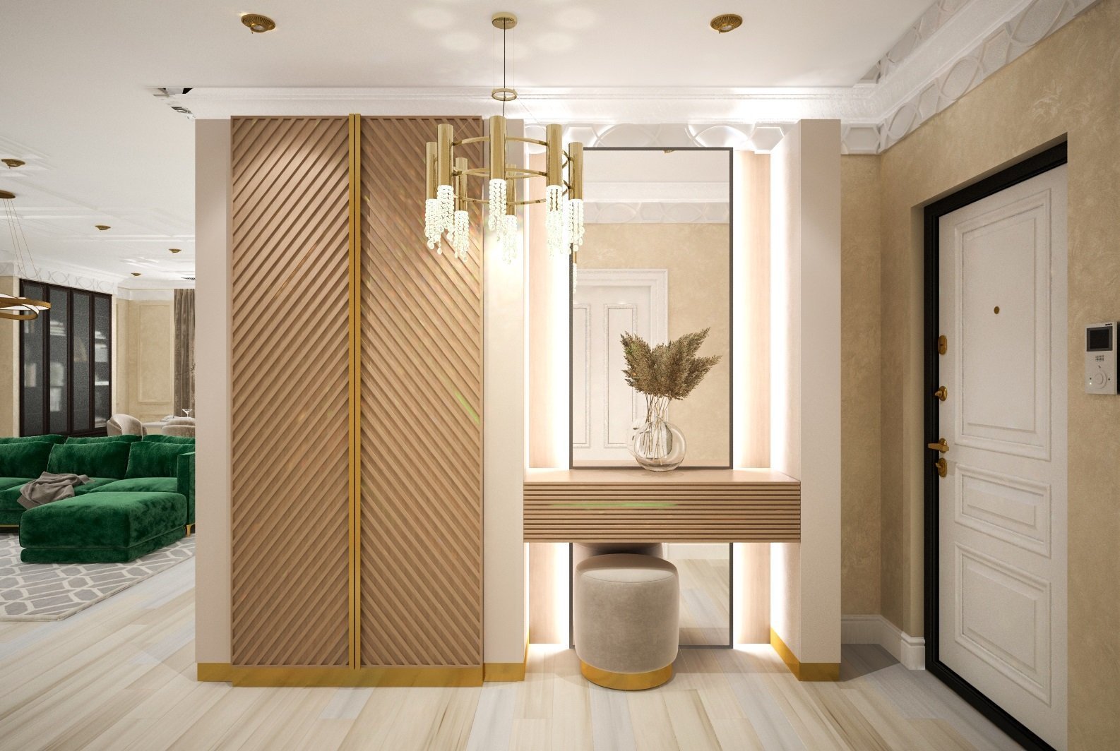 Современная прихожая с рейками