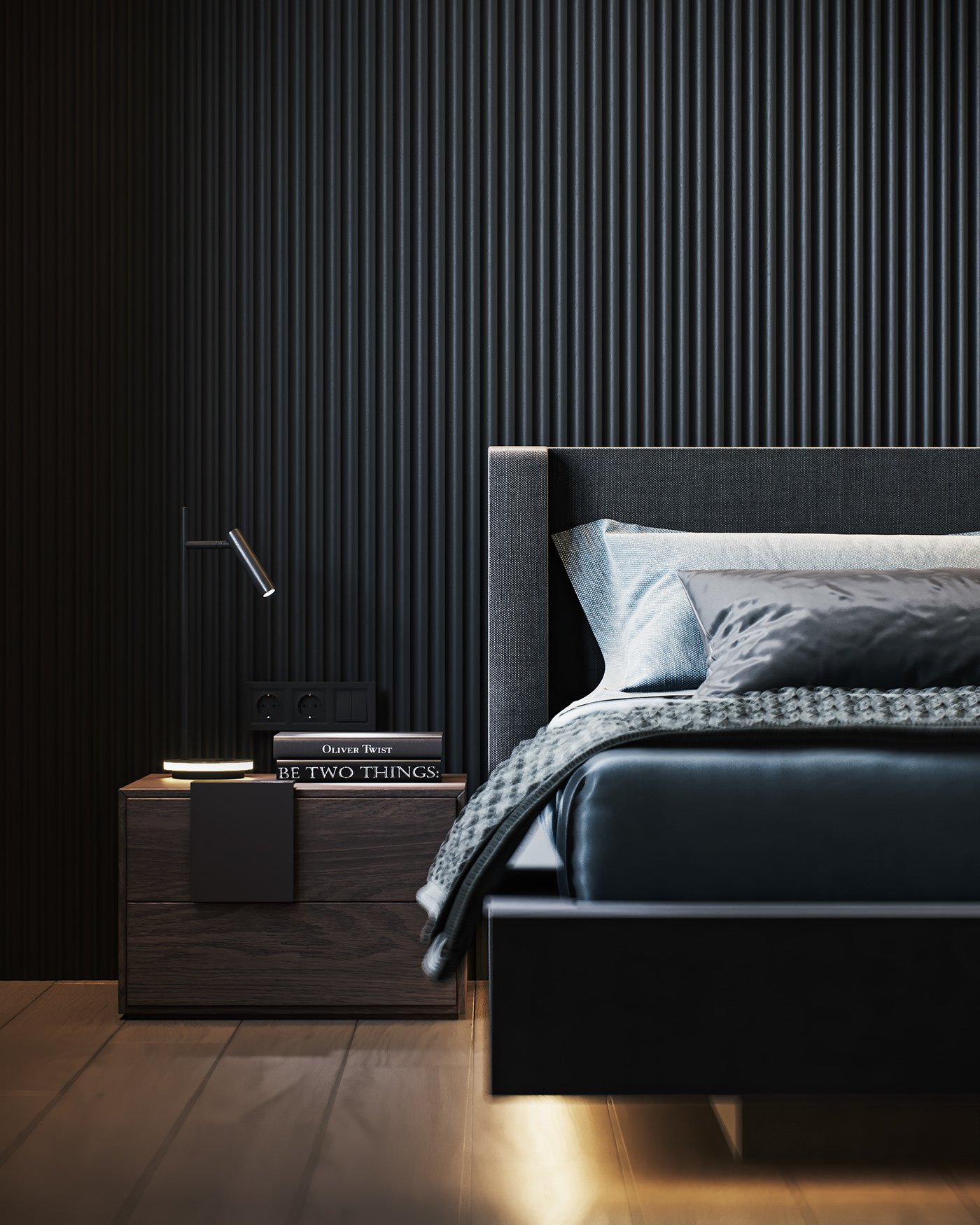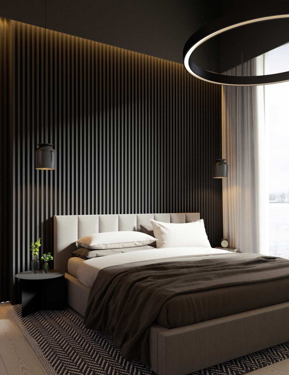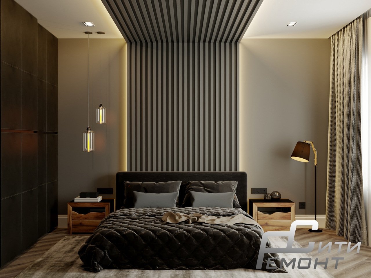Рейки в интерьере спальни