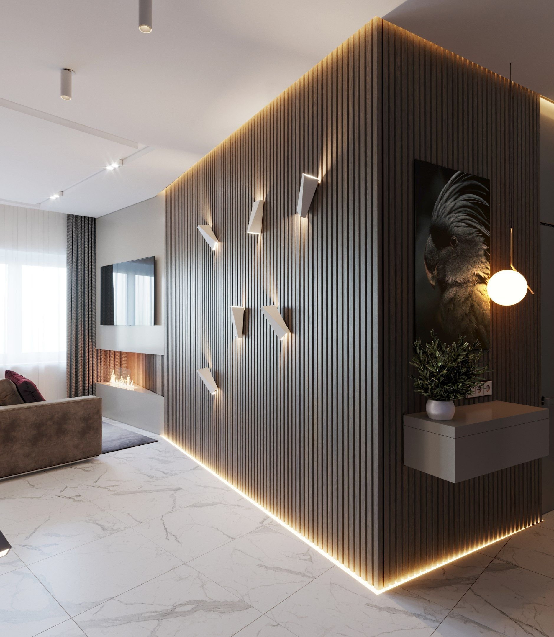 Декоративные рейки в гостиной