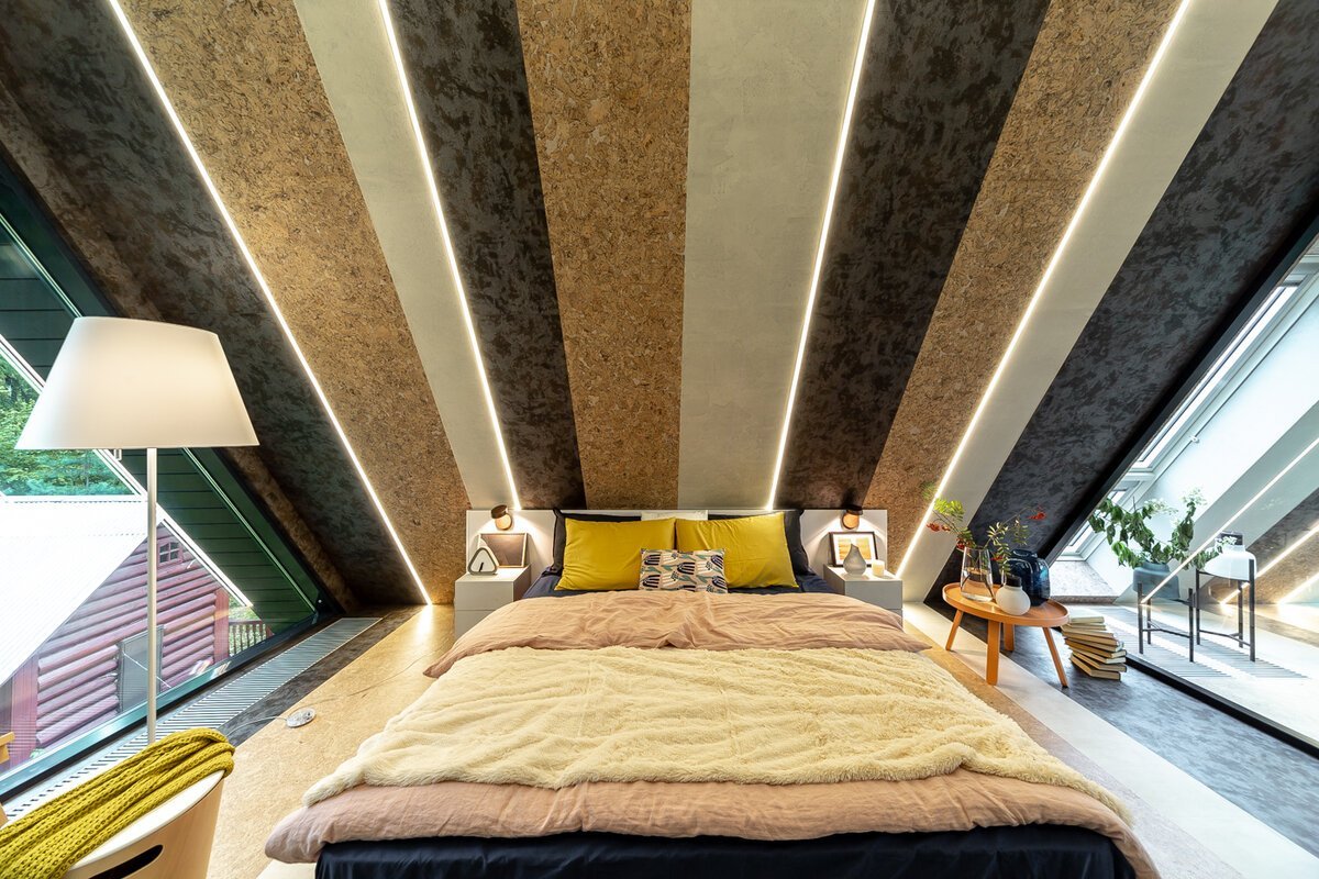 Интерьер мансарды в доме из СИП панелей