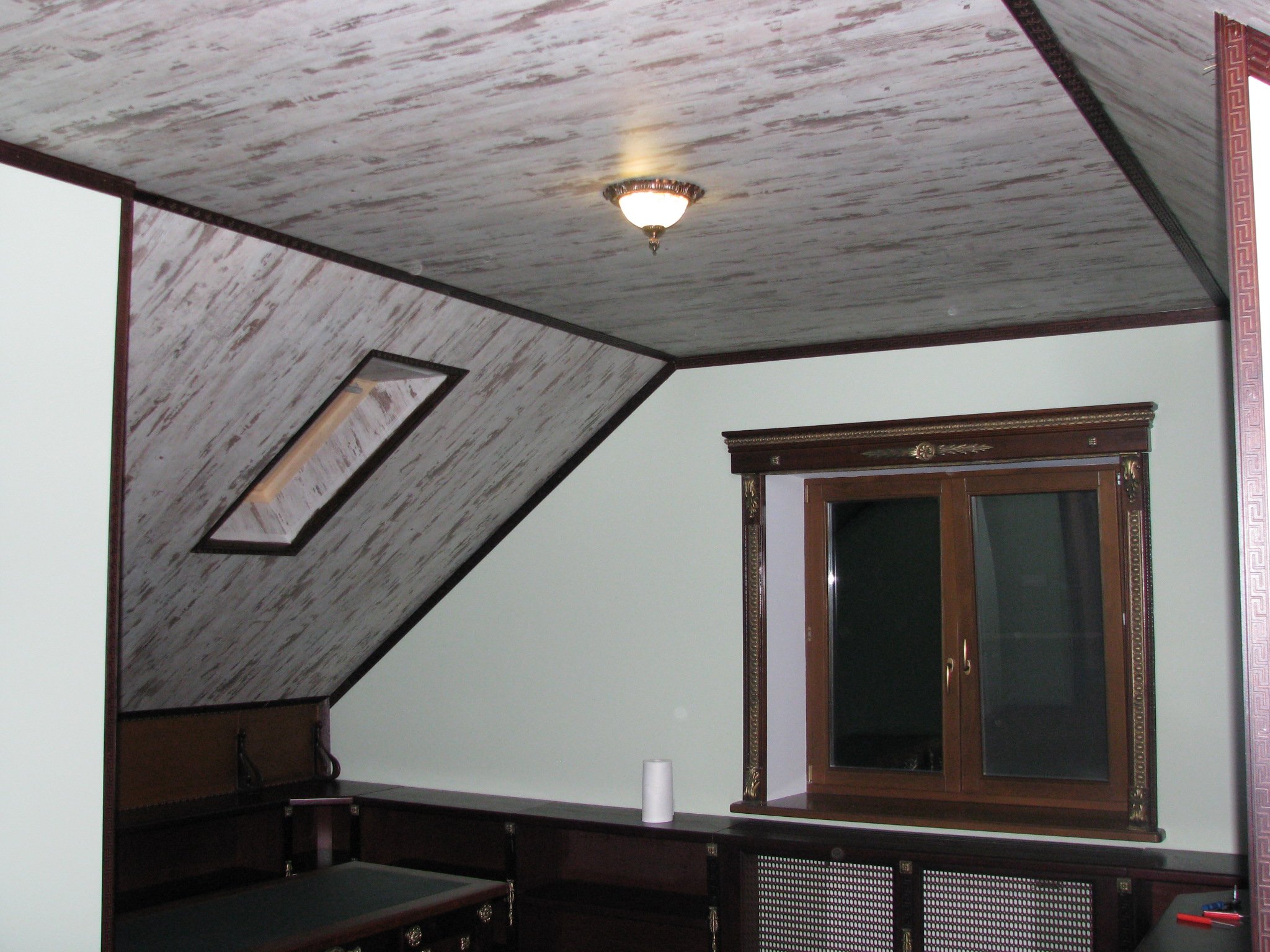 Отделка потолка мансарды фанерой