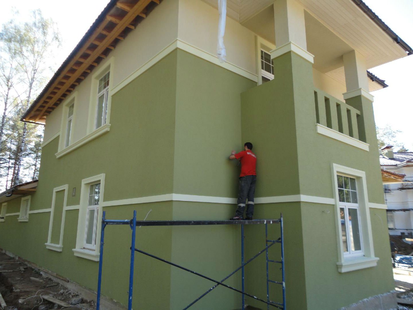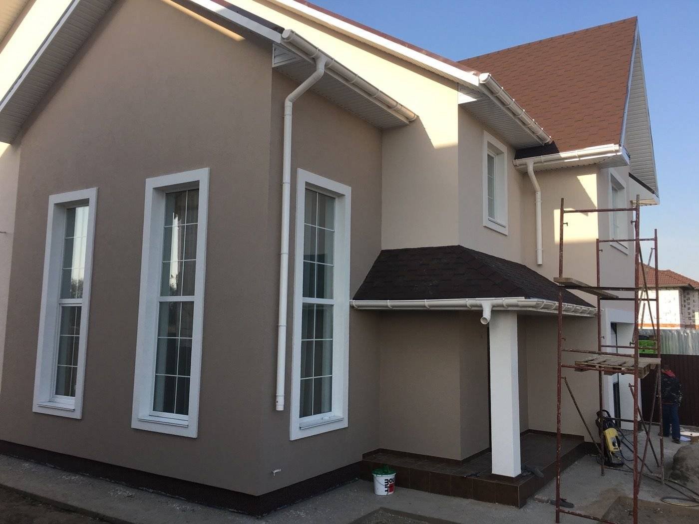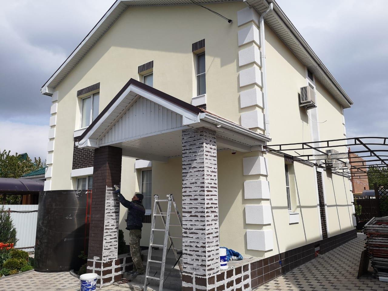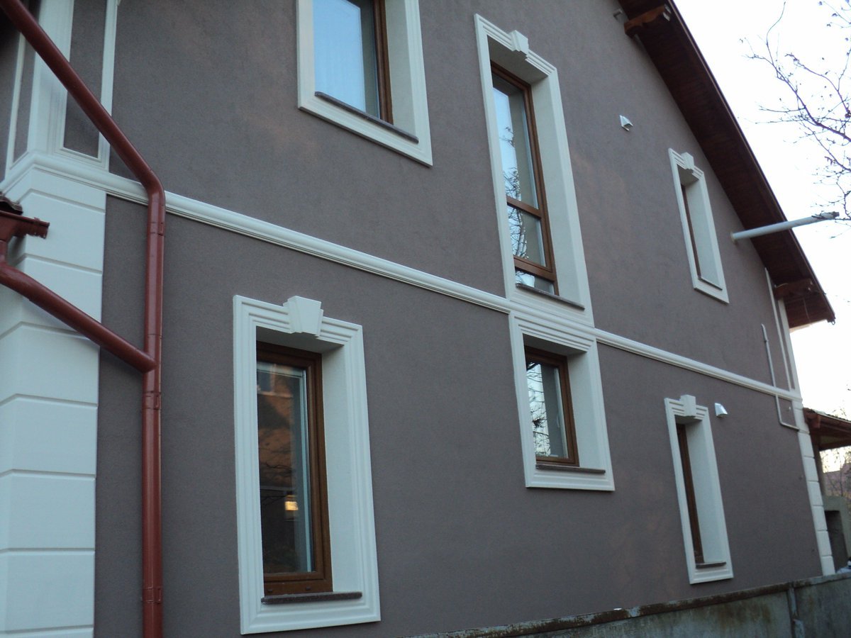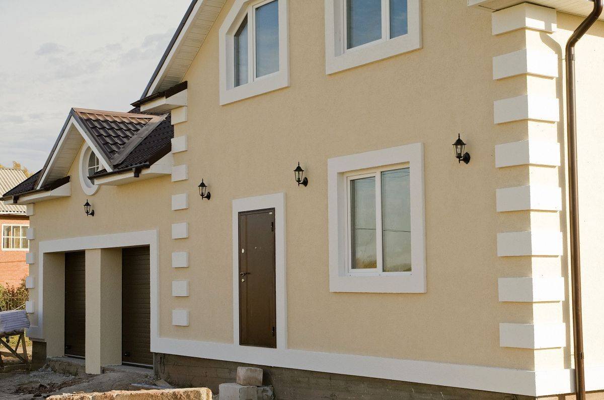 Штукатурка фасад дома с фрезеровкой