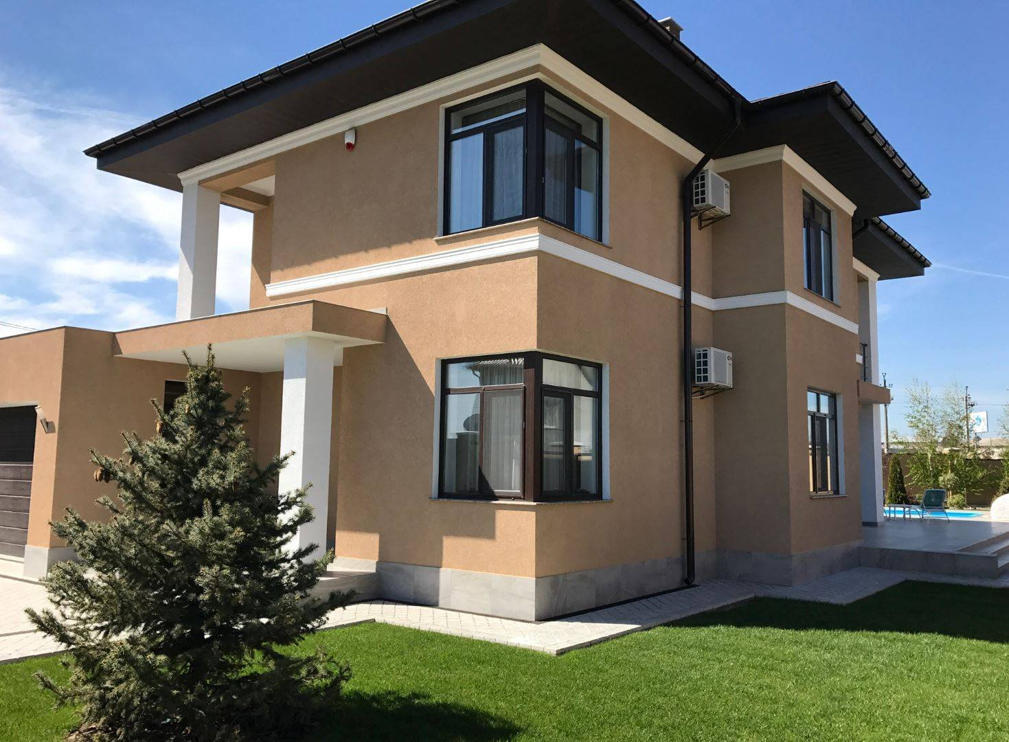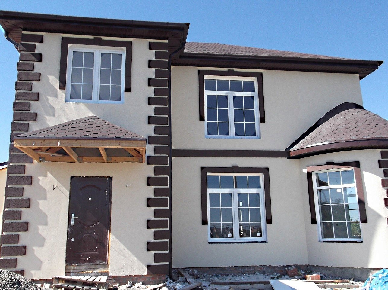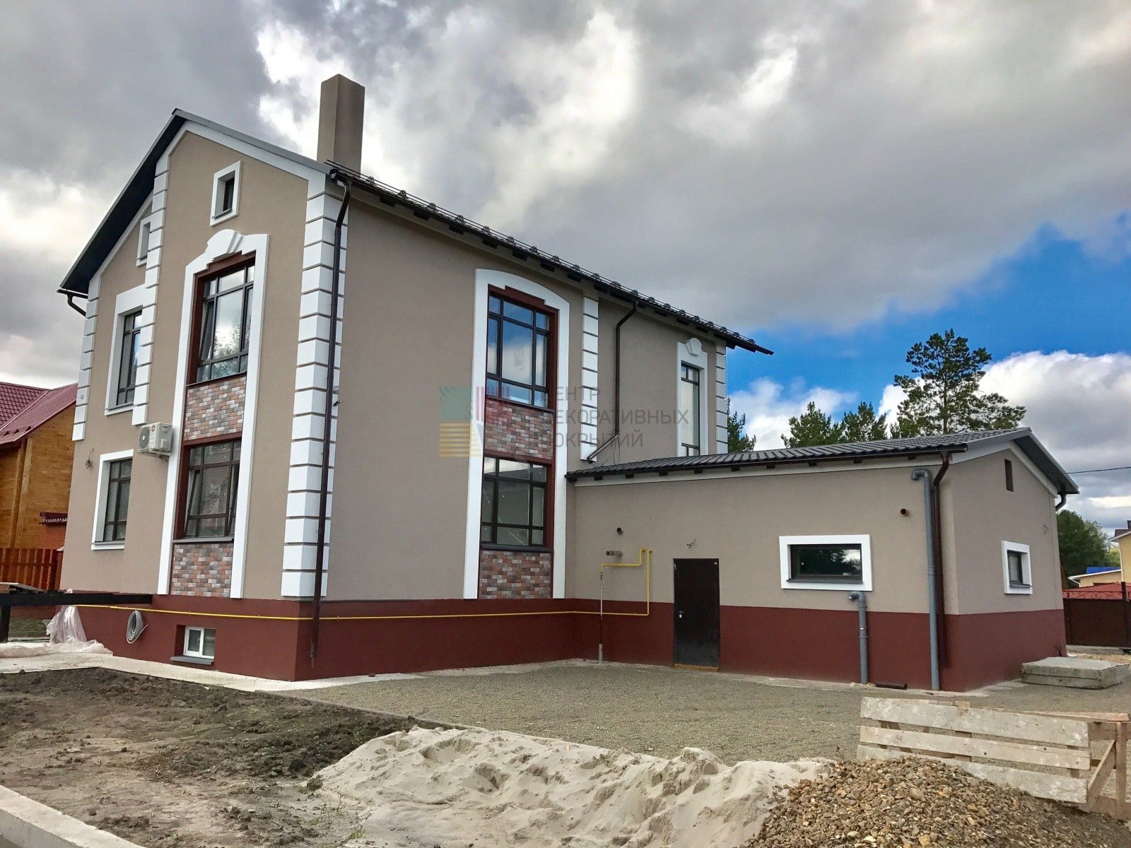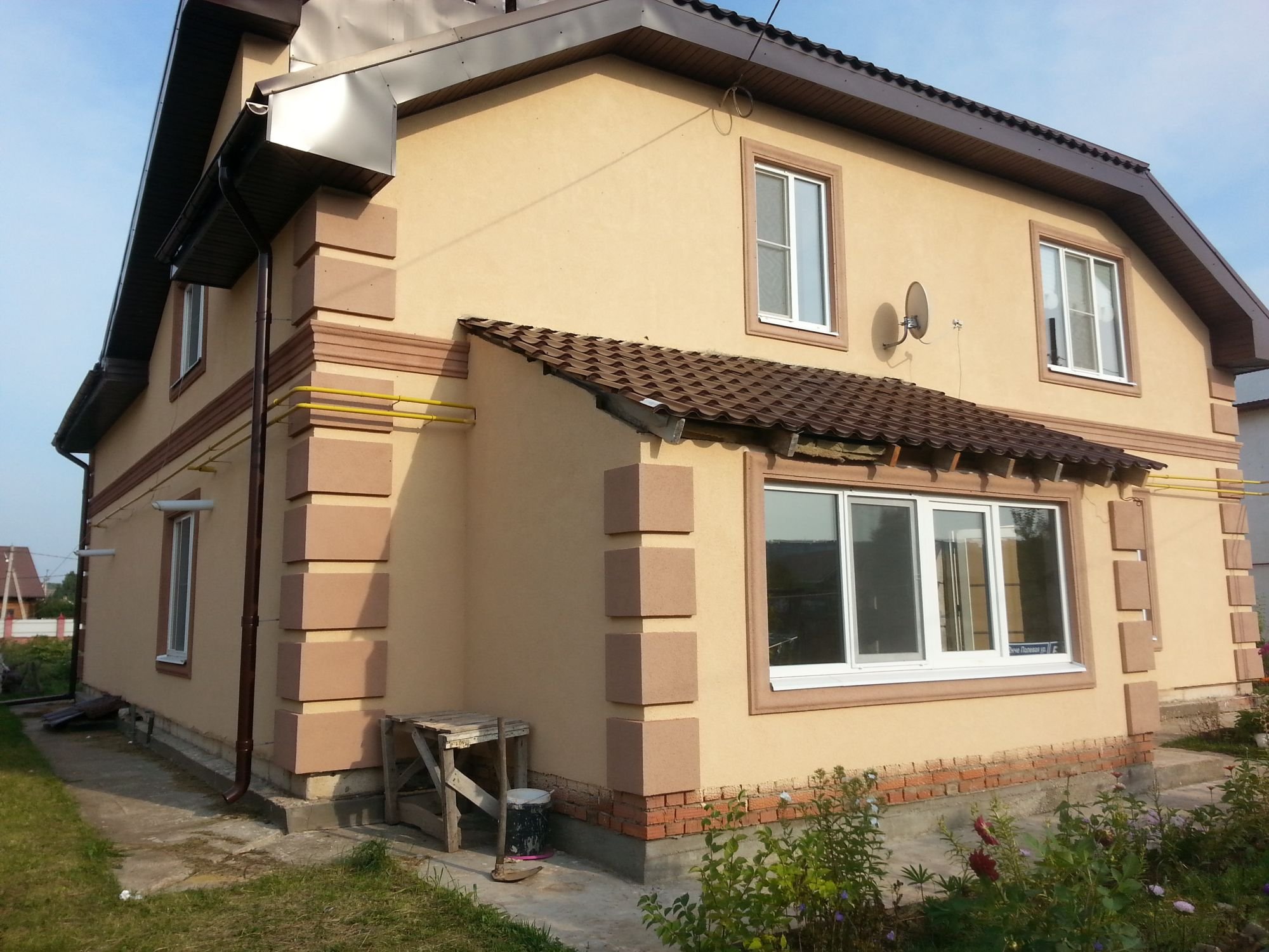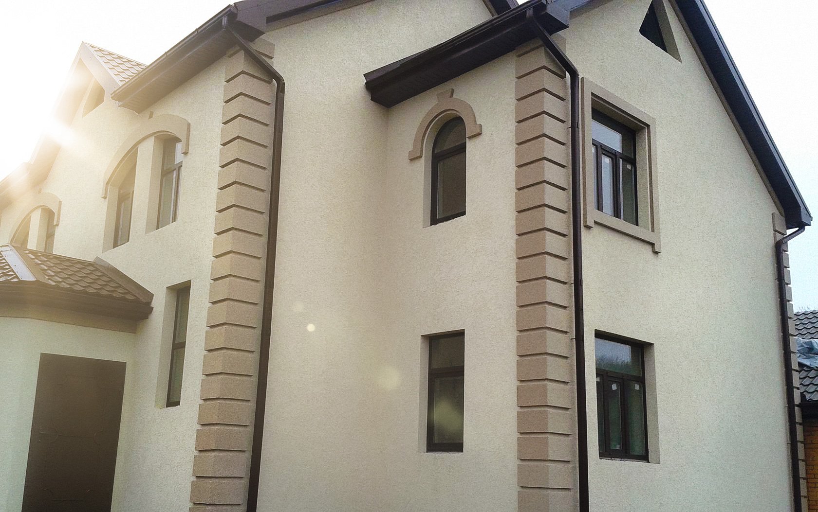 Штукатурка фасад дома с фрезеровкой