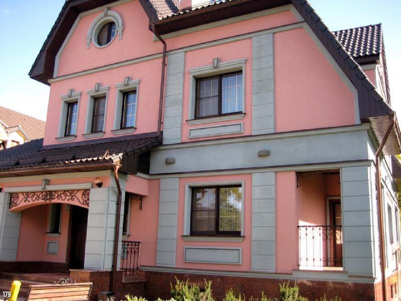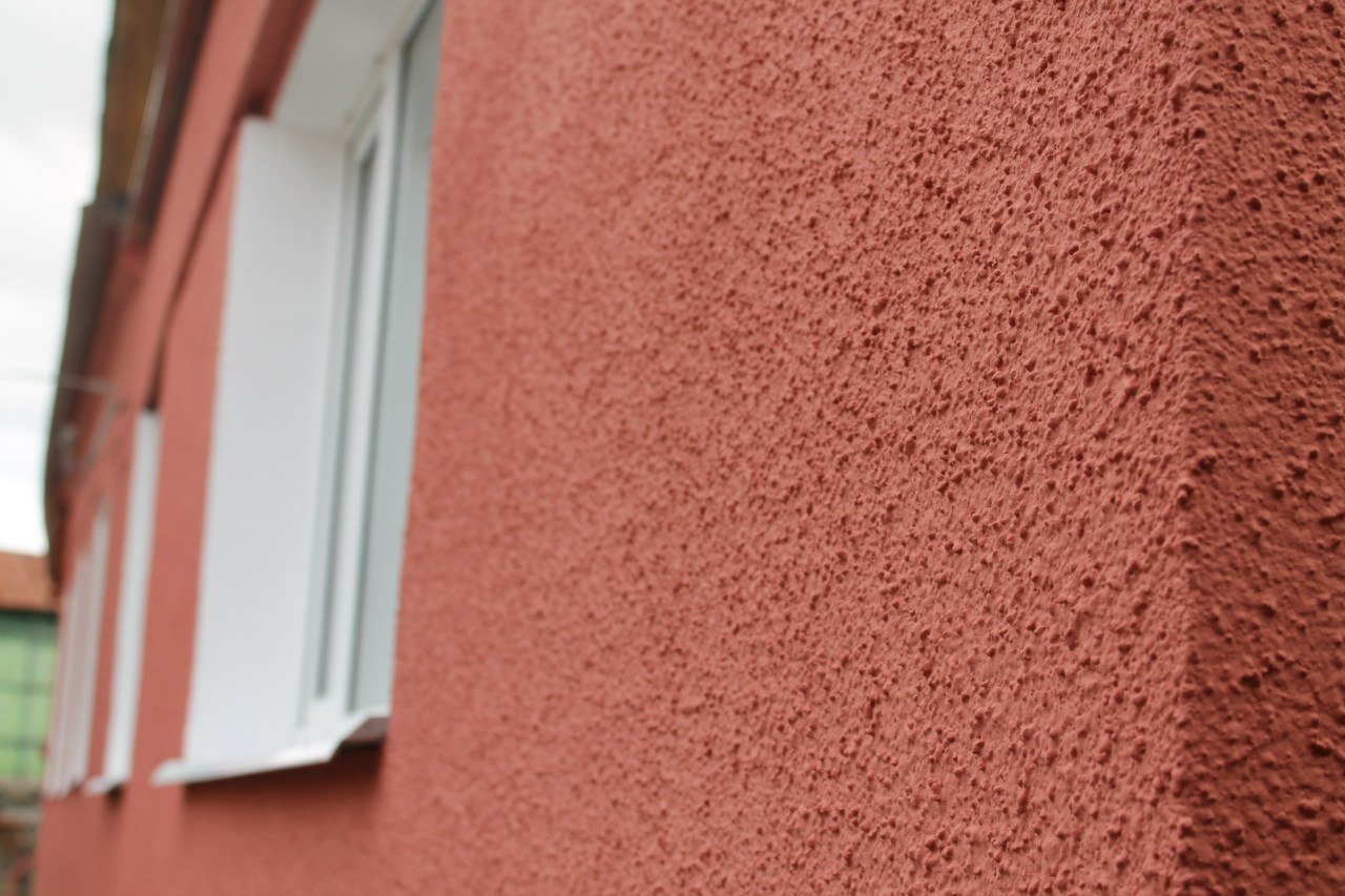 Розовая штукатурка на доме