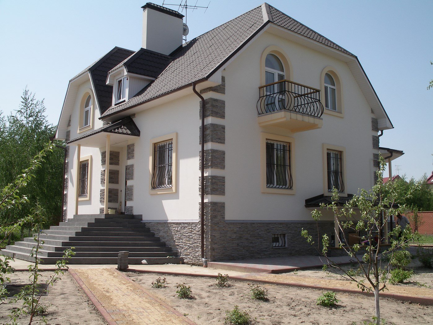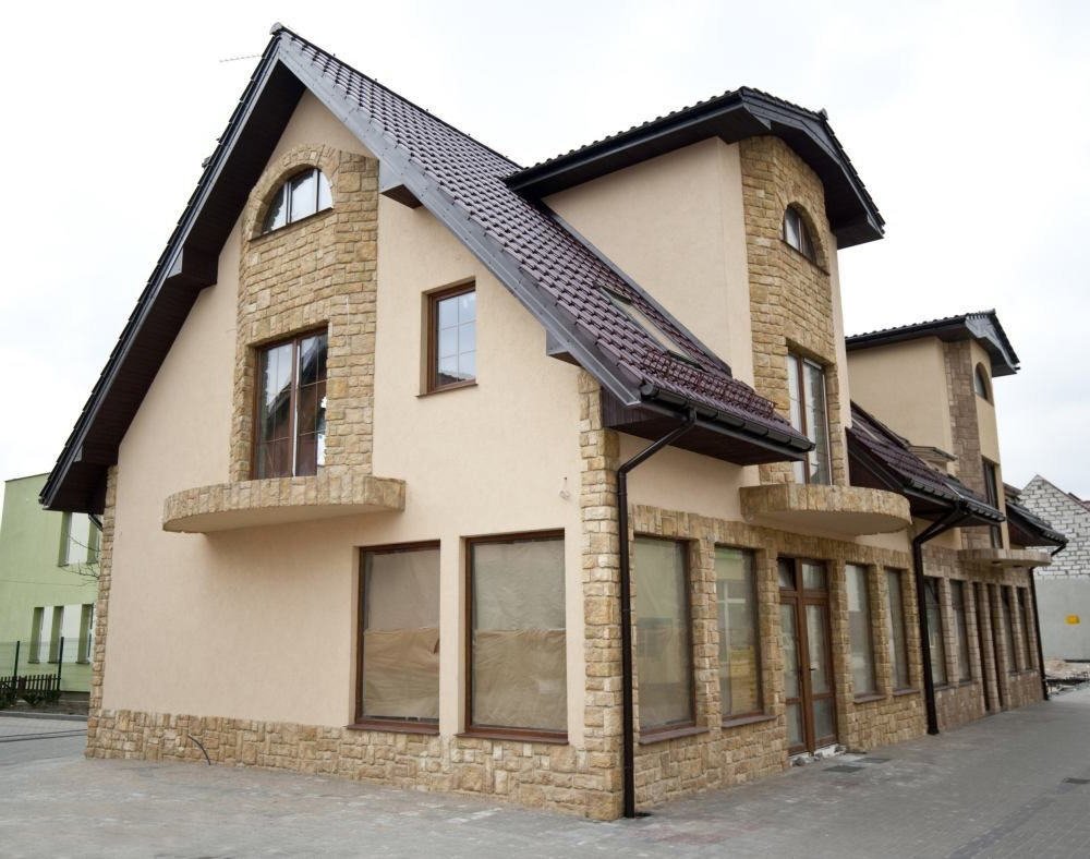 Фасад штукатурка и камень