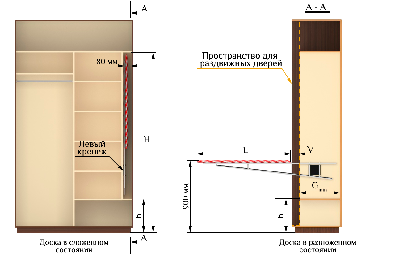 Гладильная доска встроенная в шкаф