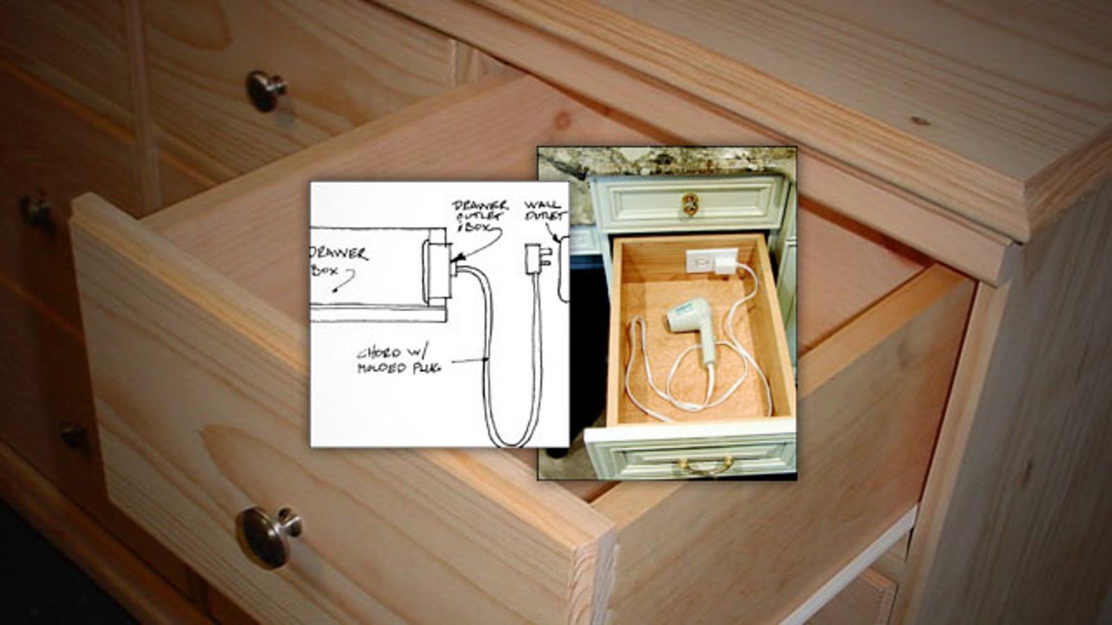 Розетка в ящике тумбочки