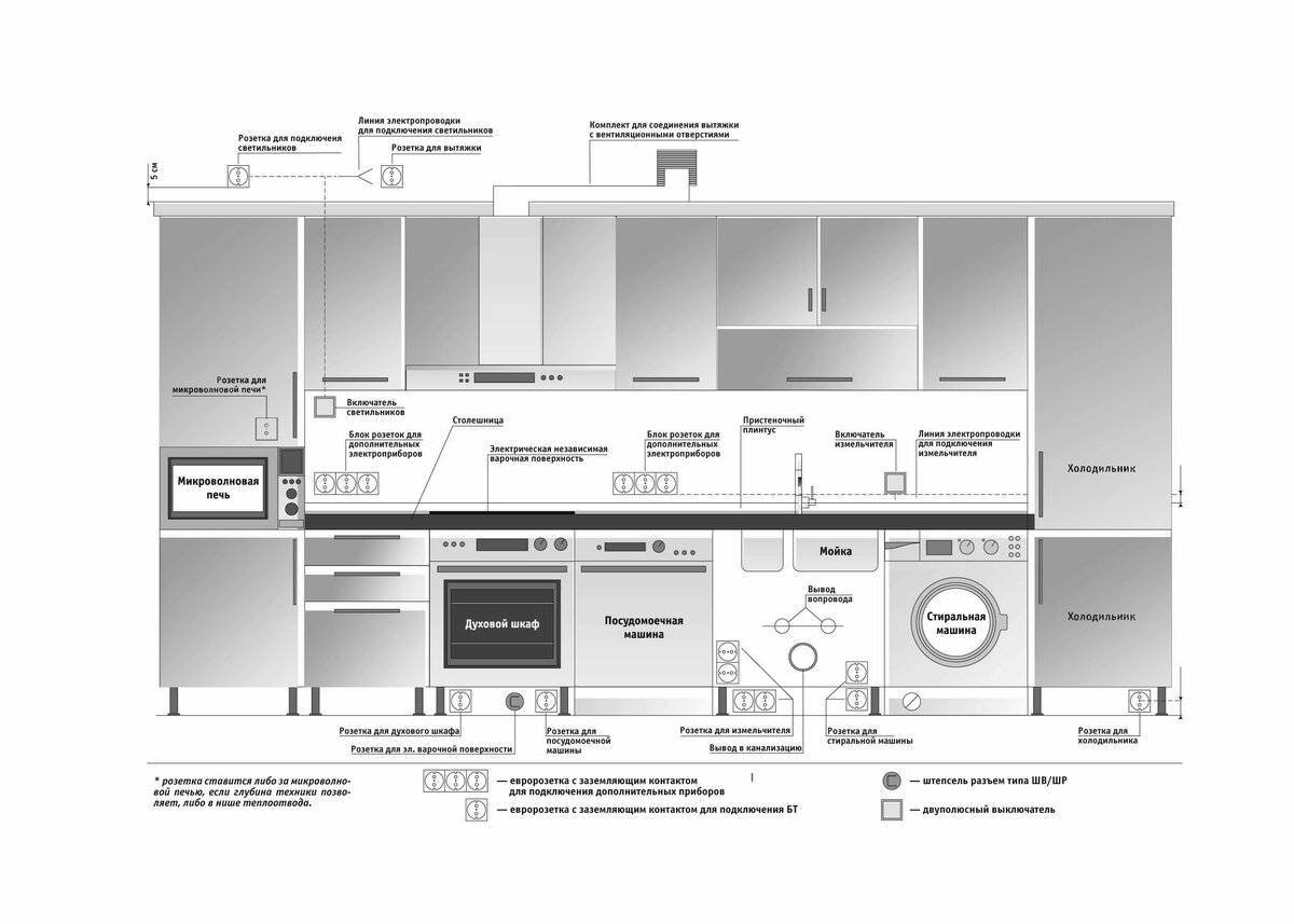 Схема проводки электричества на кухне