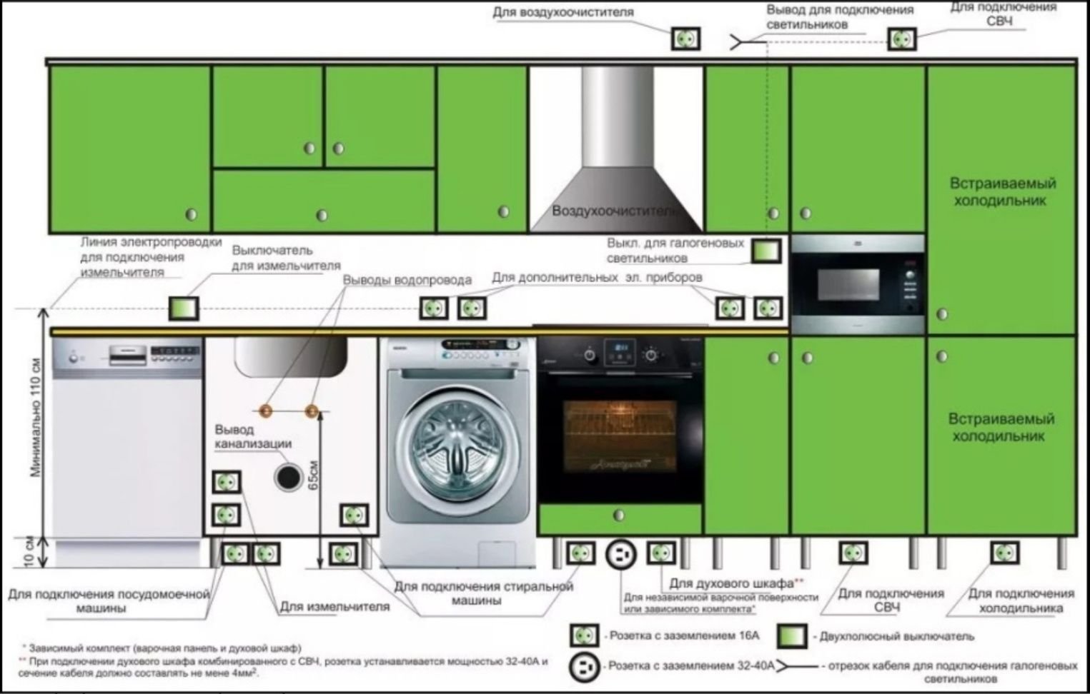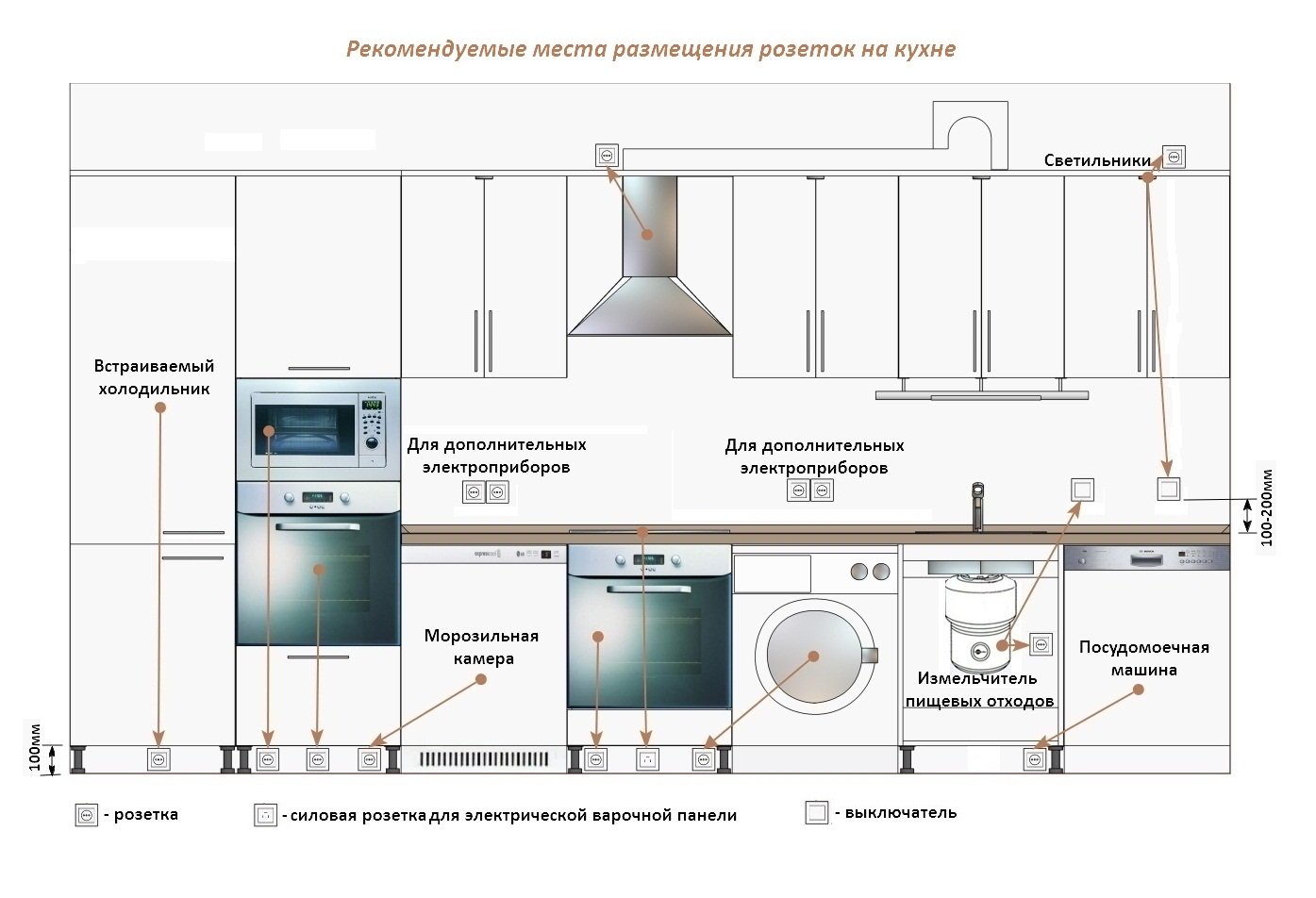 Схема установки розеток на кухне