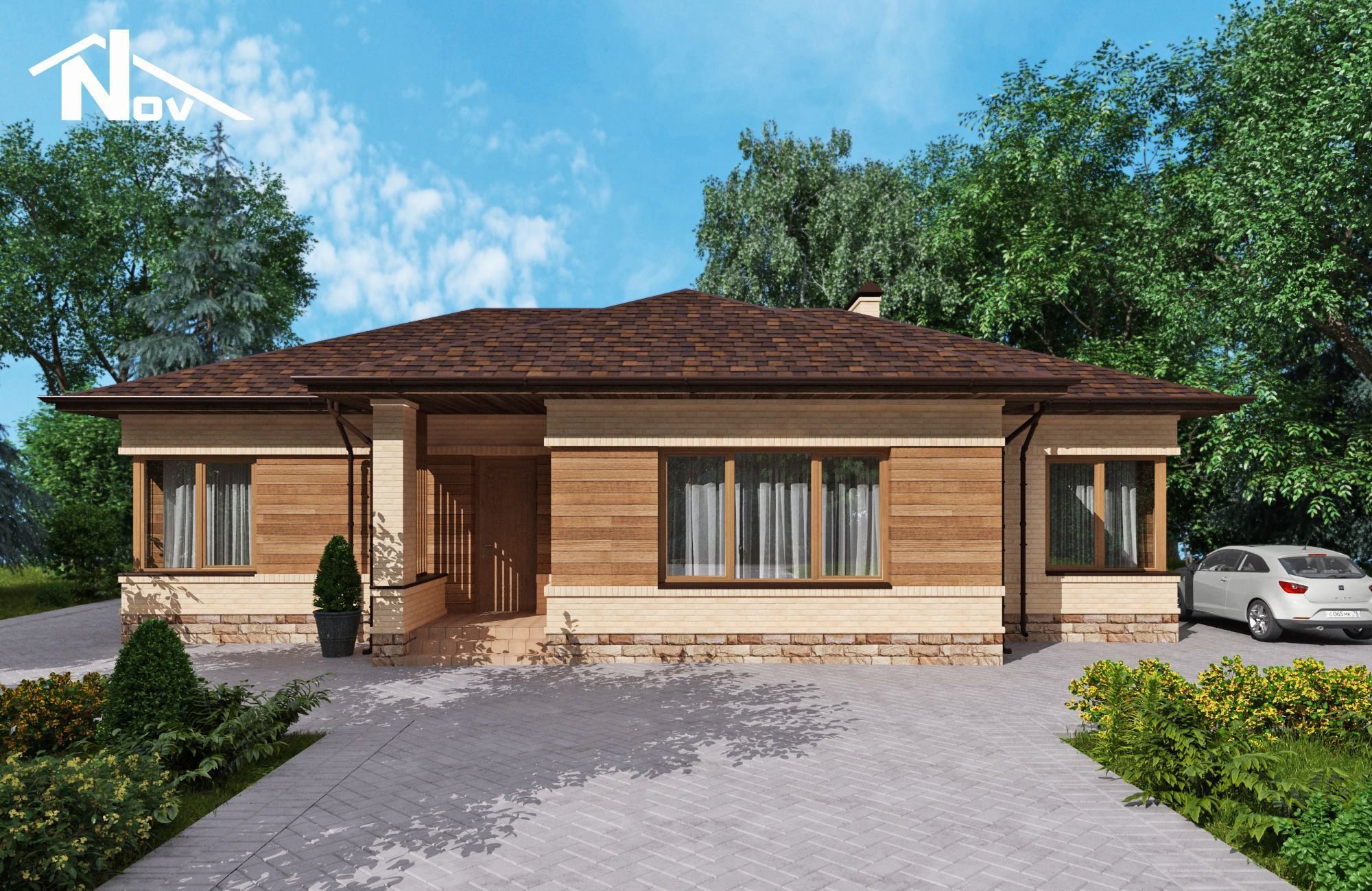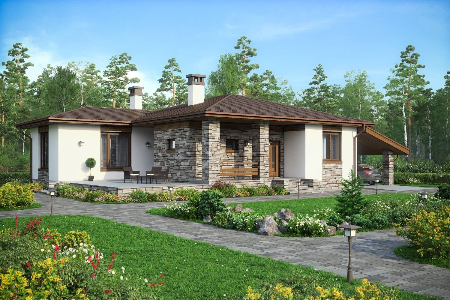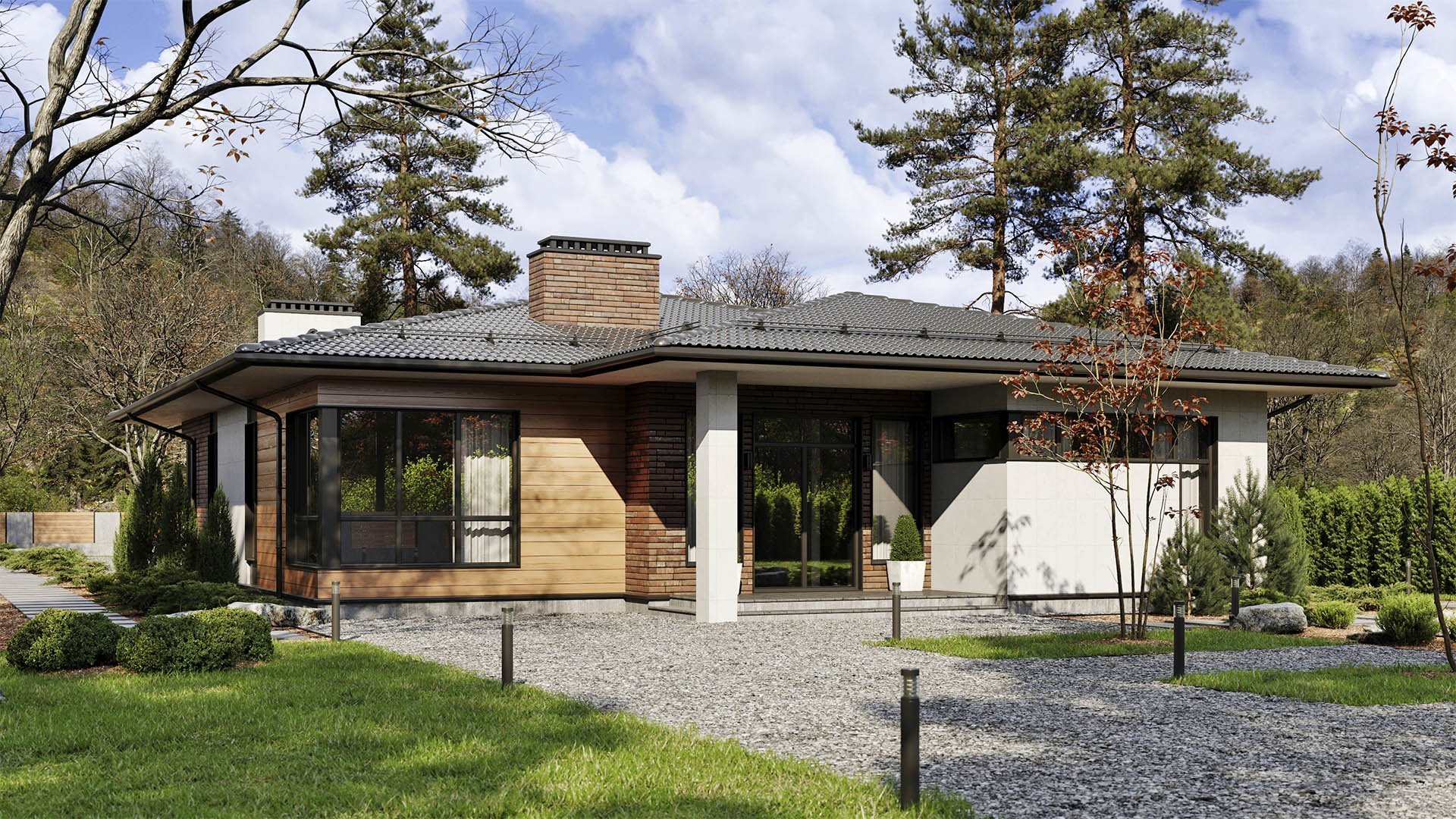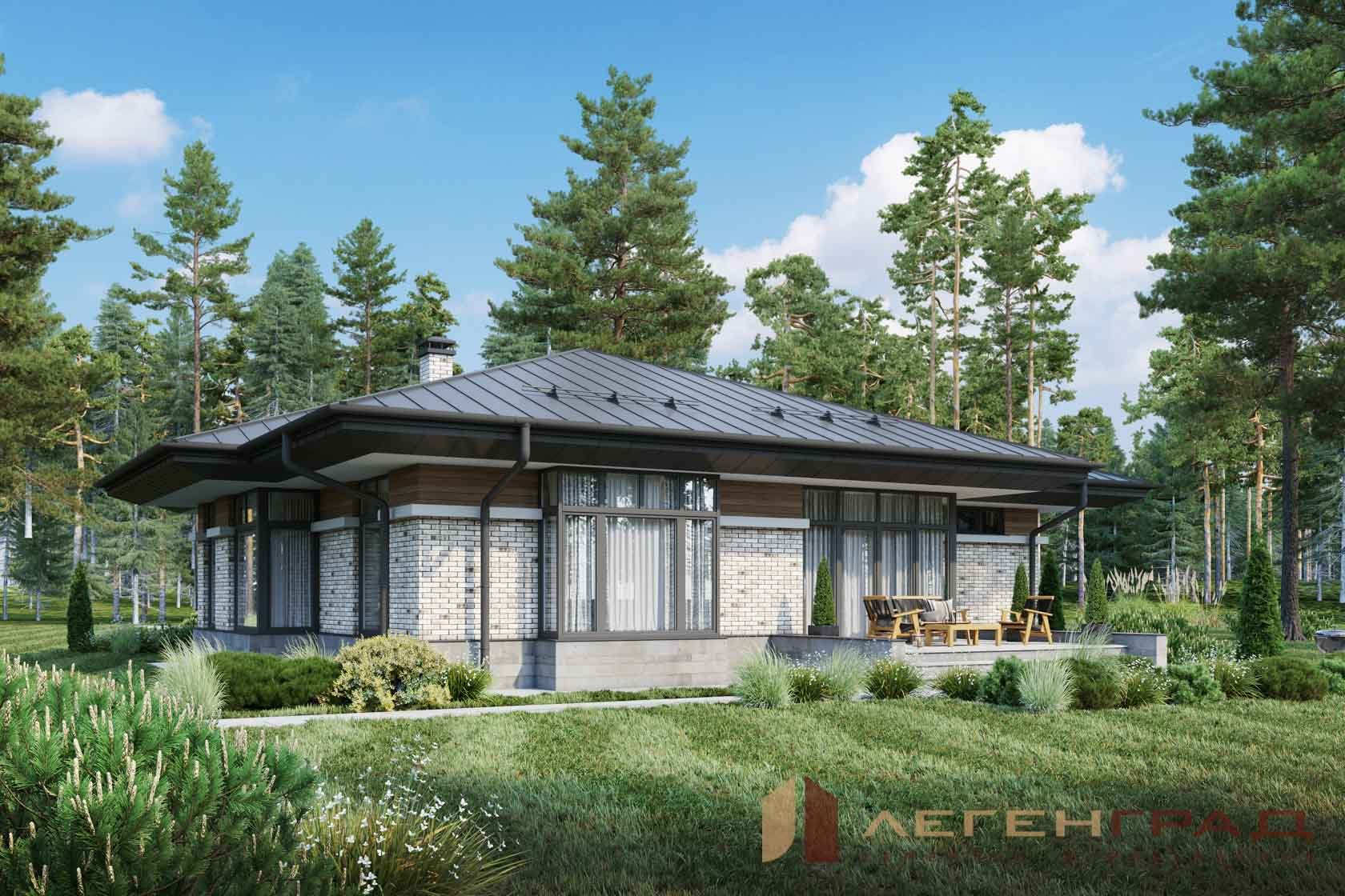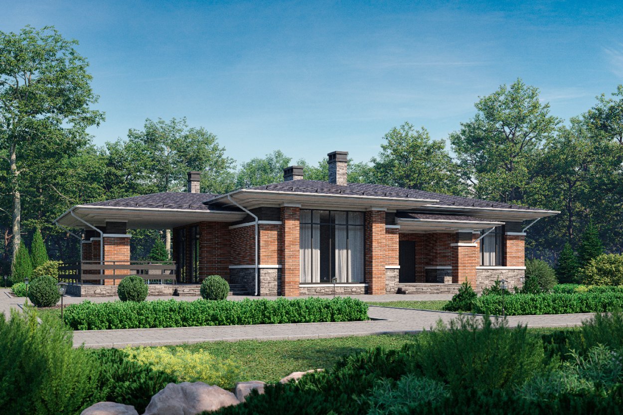 Одноэтажный дом в стиле Райта до 100 кв.м