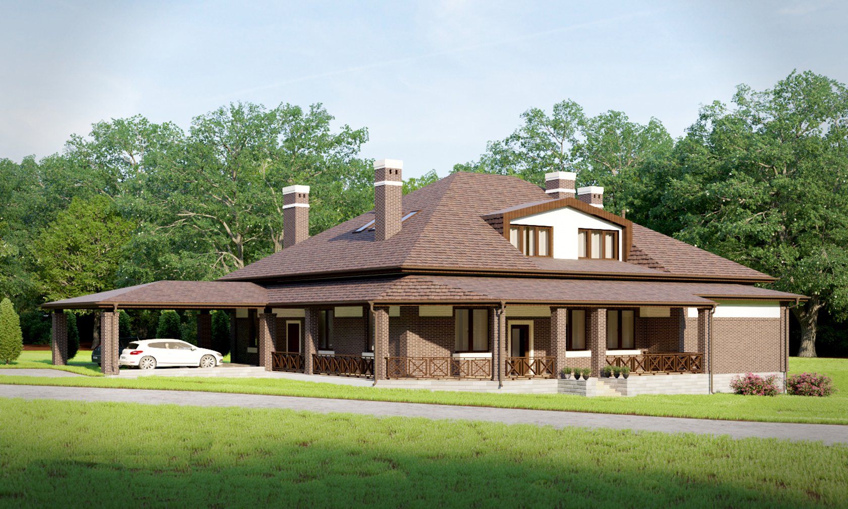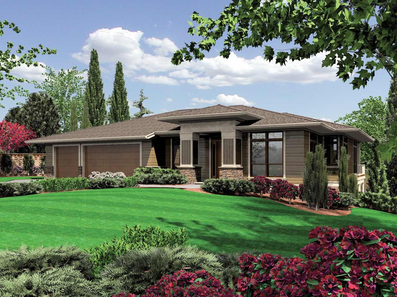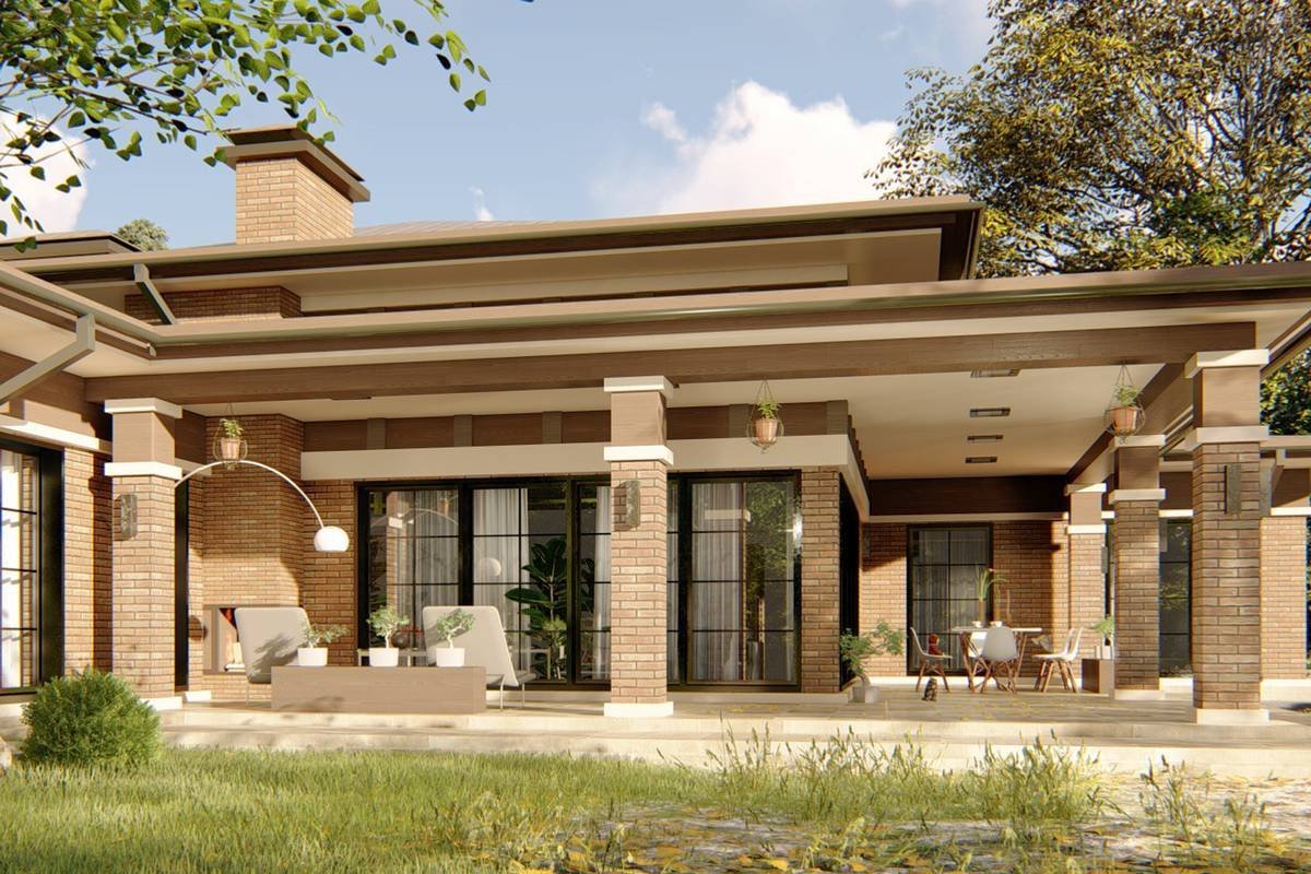 Одноэтажный дом в стиле Ллойда Райта прерии