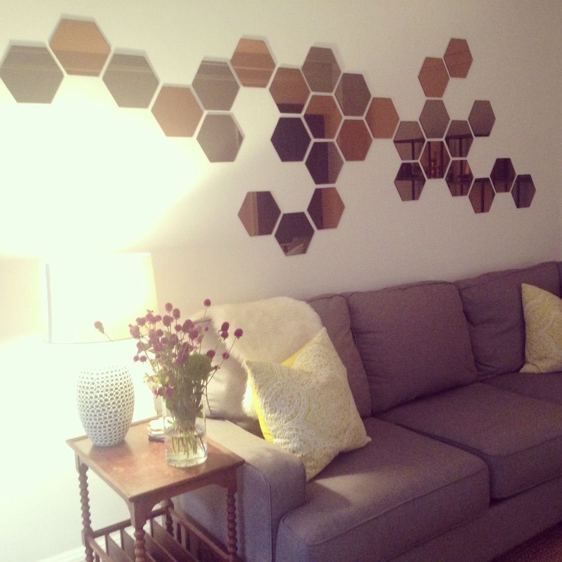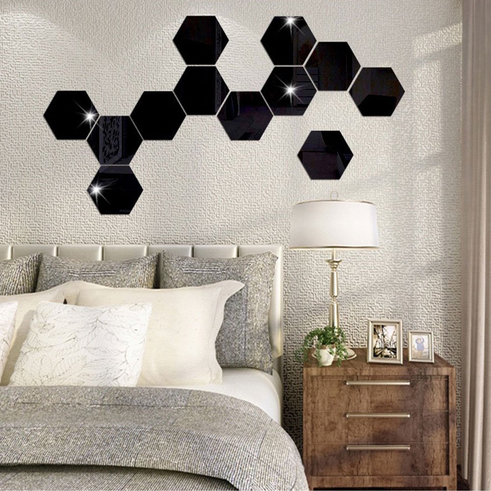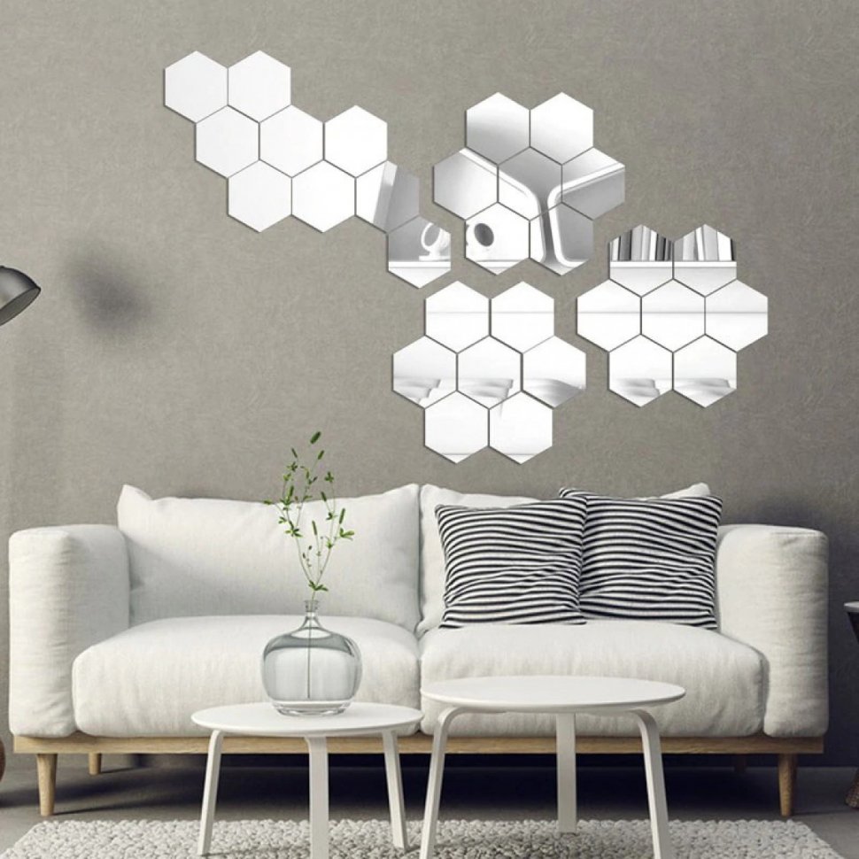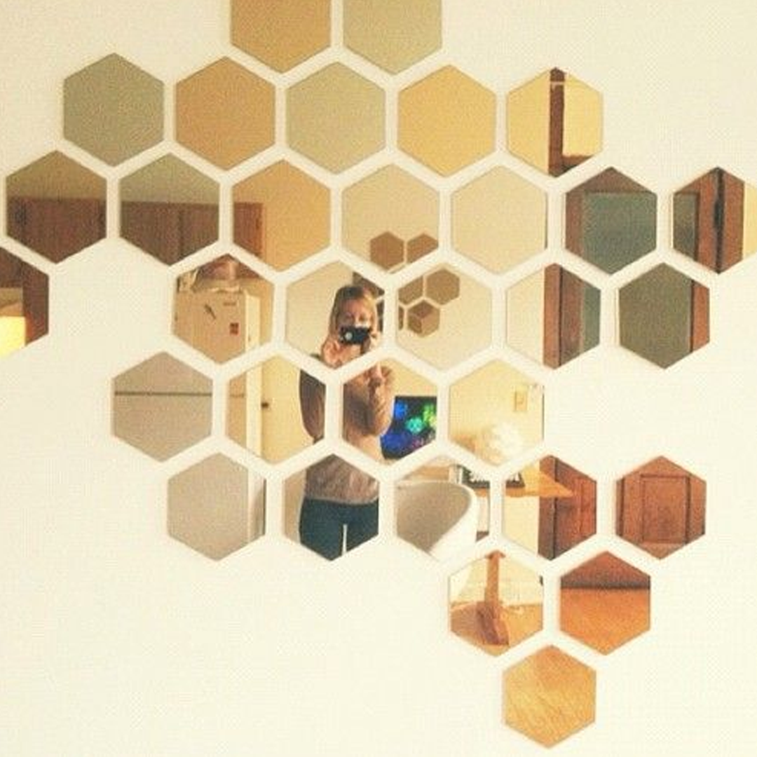 Зеркальная настенная наклейка шестигранник, 12шт., 12х11х6см