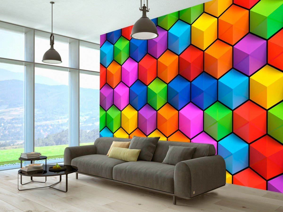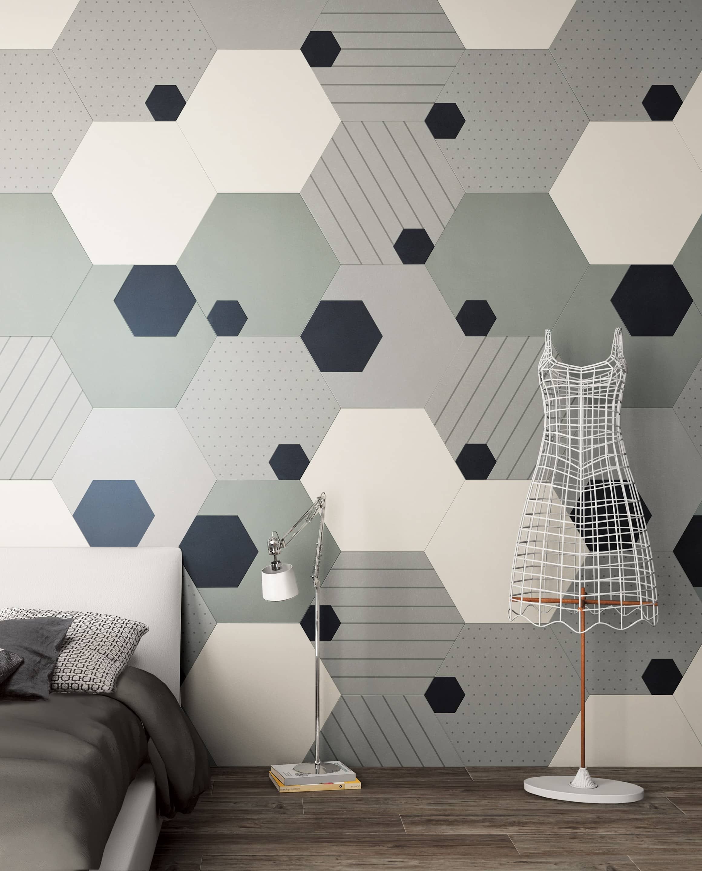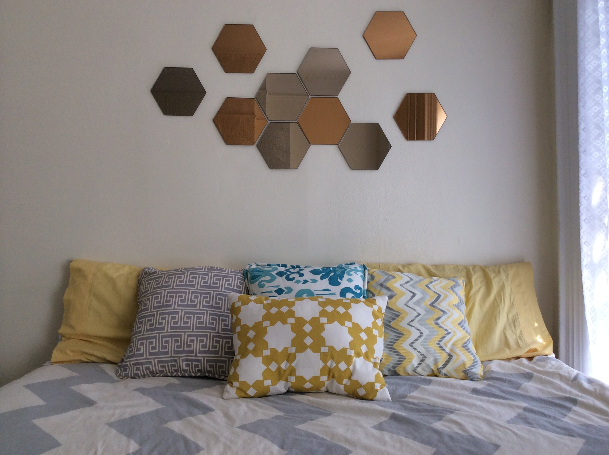 Зеркальная настенная наклейка шестигранник, 12шт., 12х11х6см