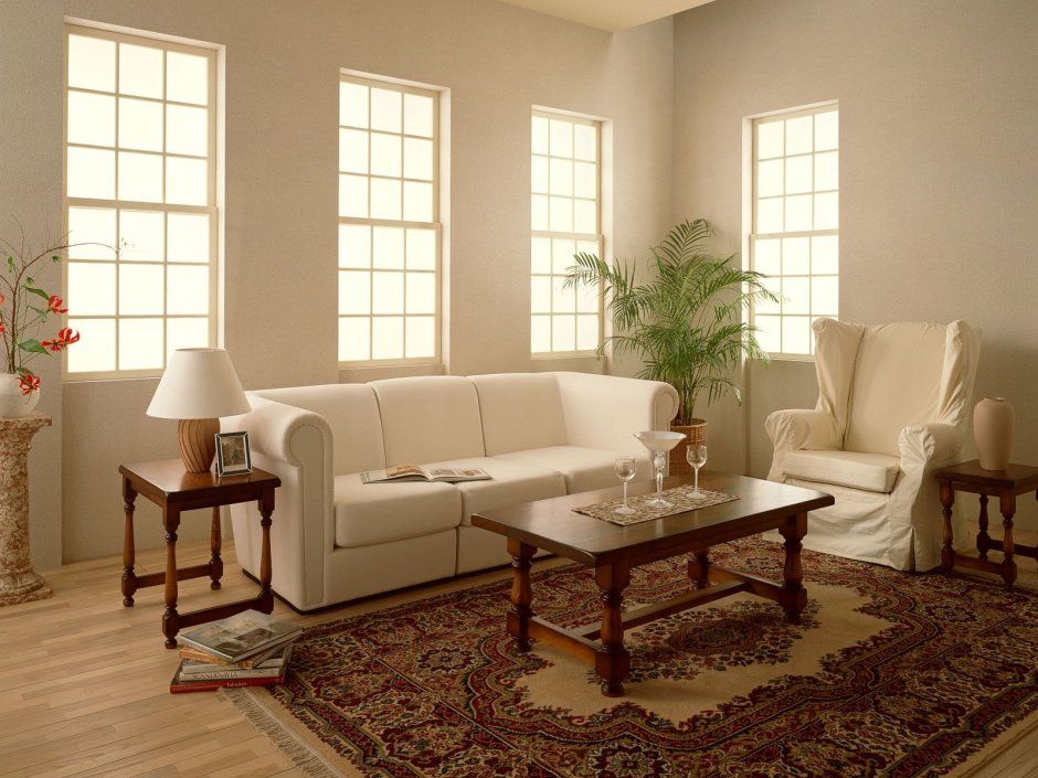 Цвет слоновой кости в интерьере гостиной