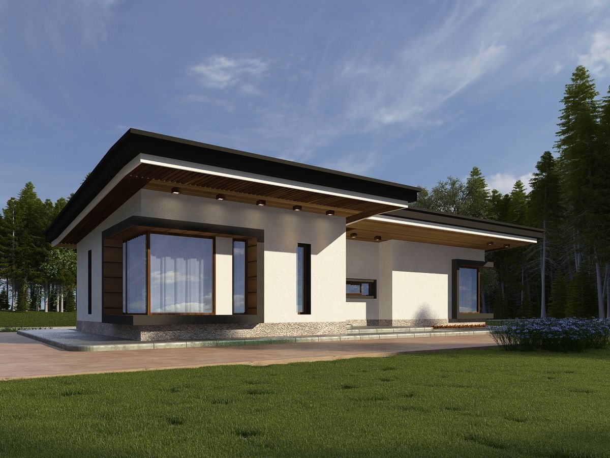 Дом одноэтажный с плоской крышей проект м51