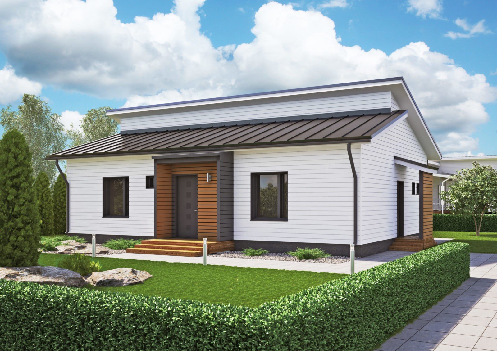 Дом 100 м2 одноэтажный с односкатной крышей