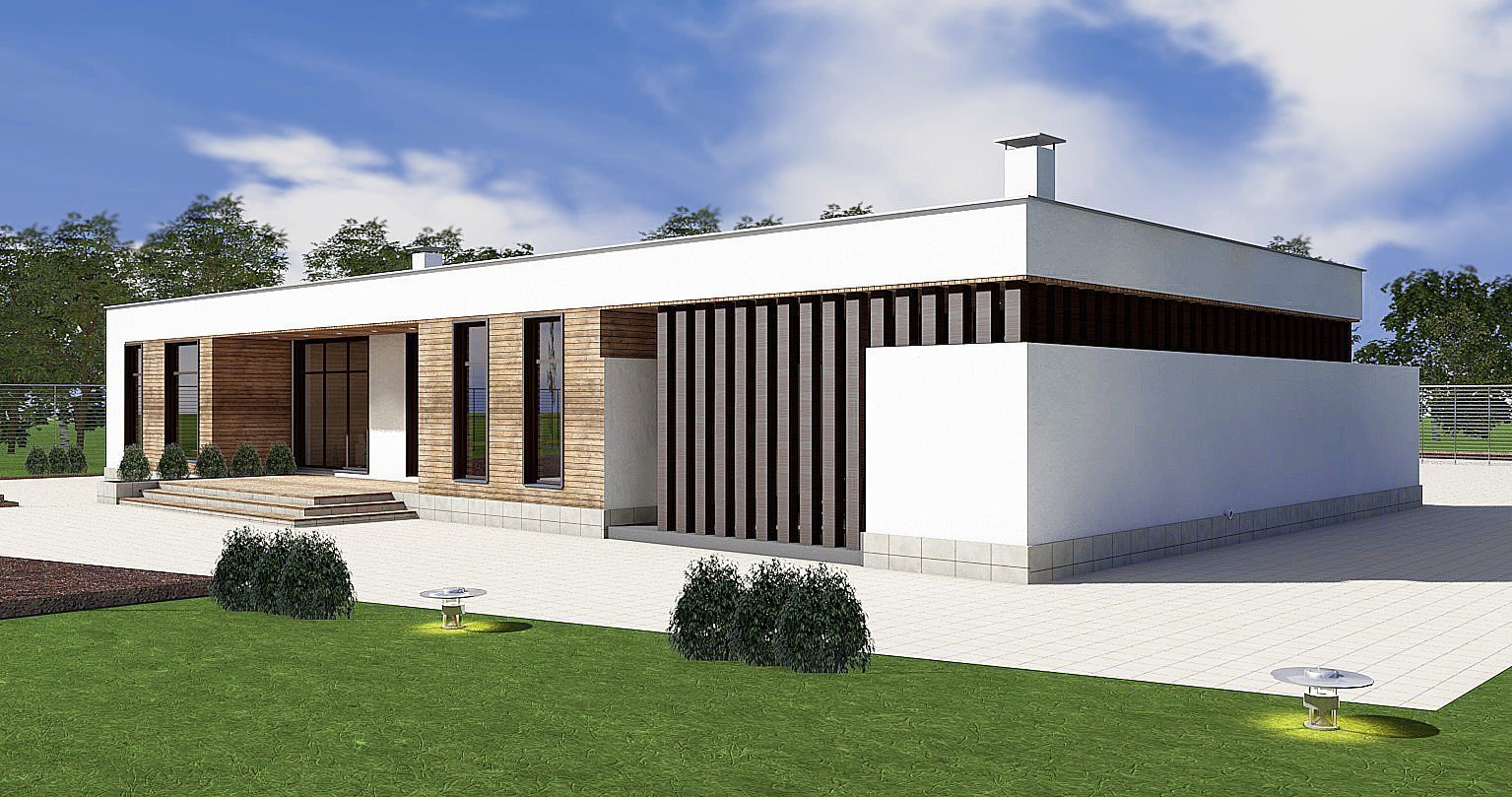 Одноэтажный дом z500 с плоской крышей