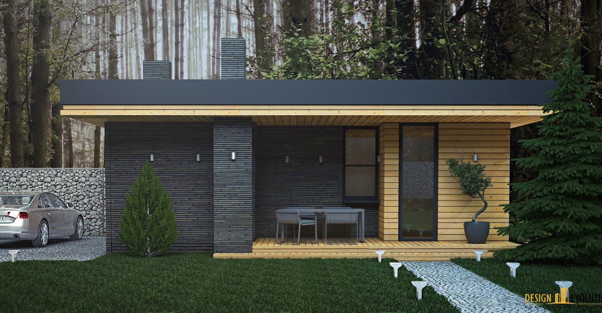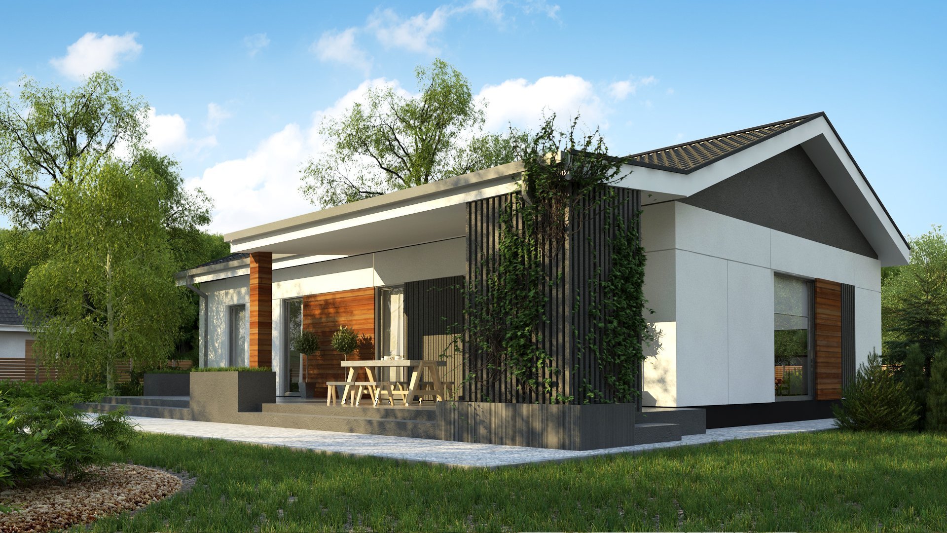 Одноэтажный дом в стиле Модерн с террасой