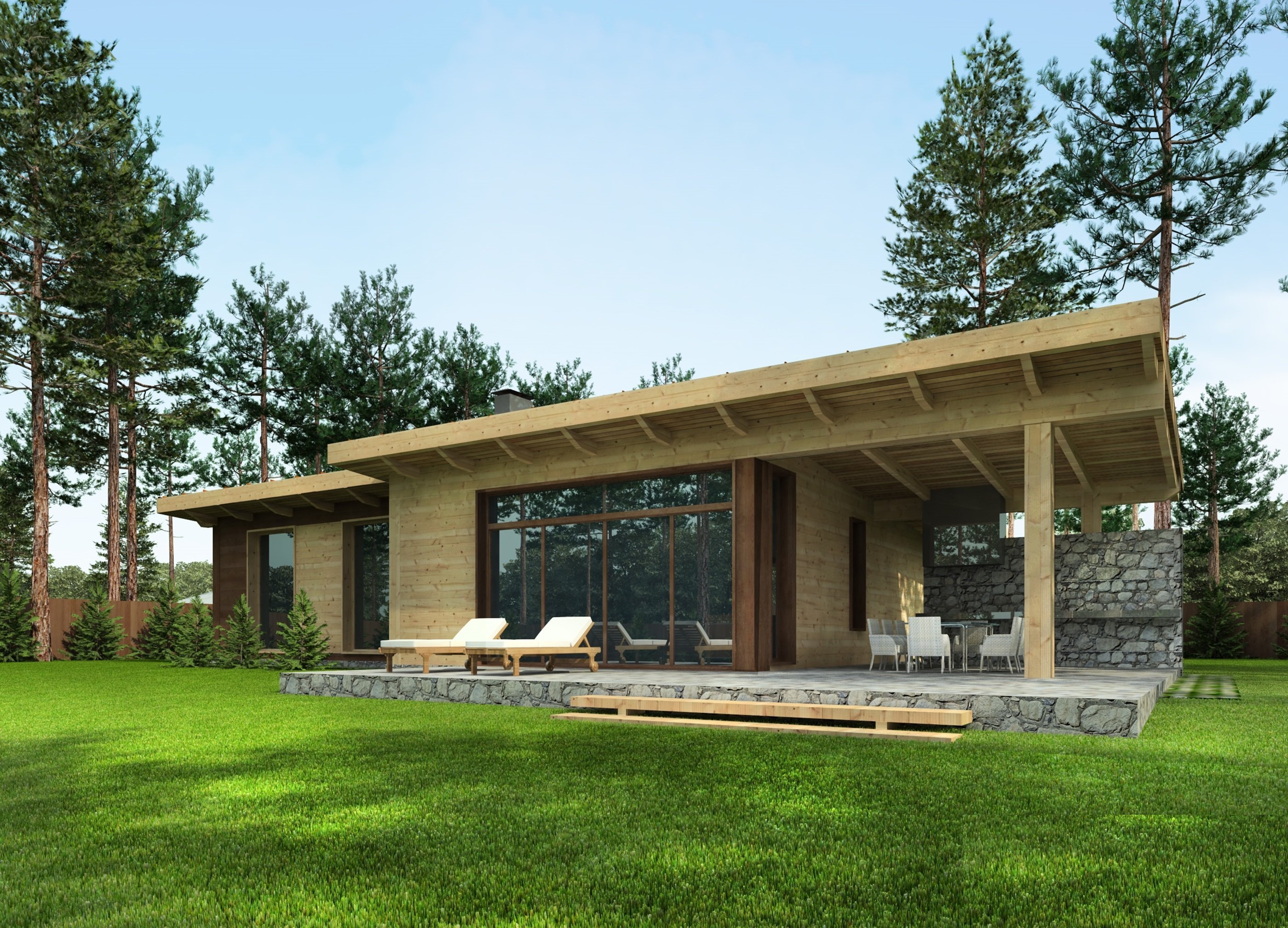 Шале одноэтажный с односкатной крышей