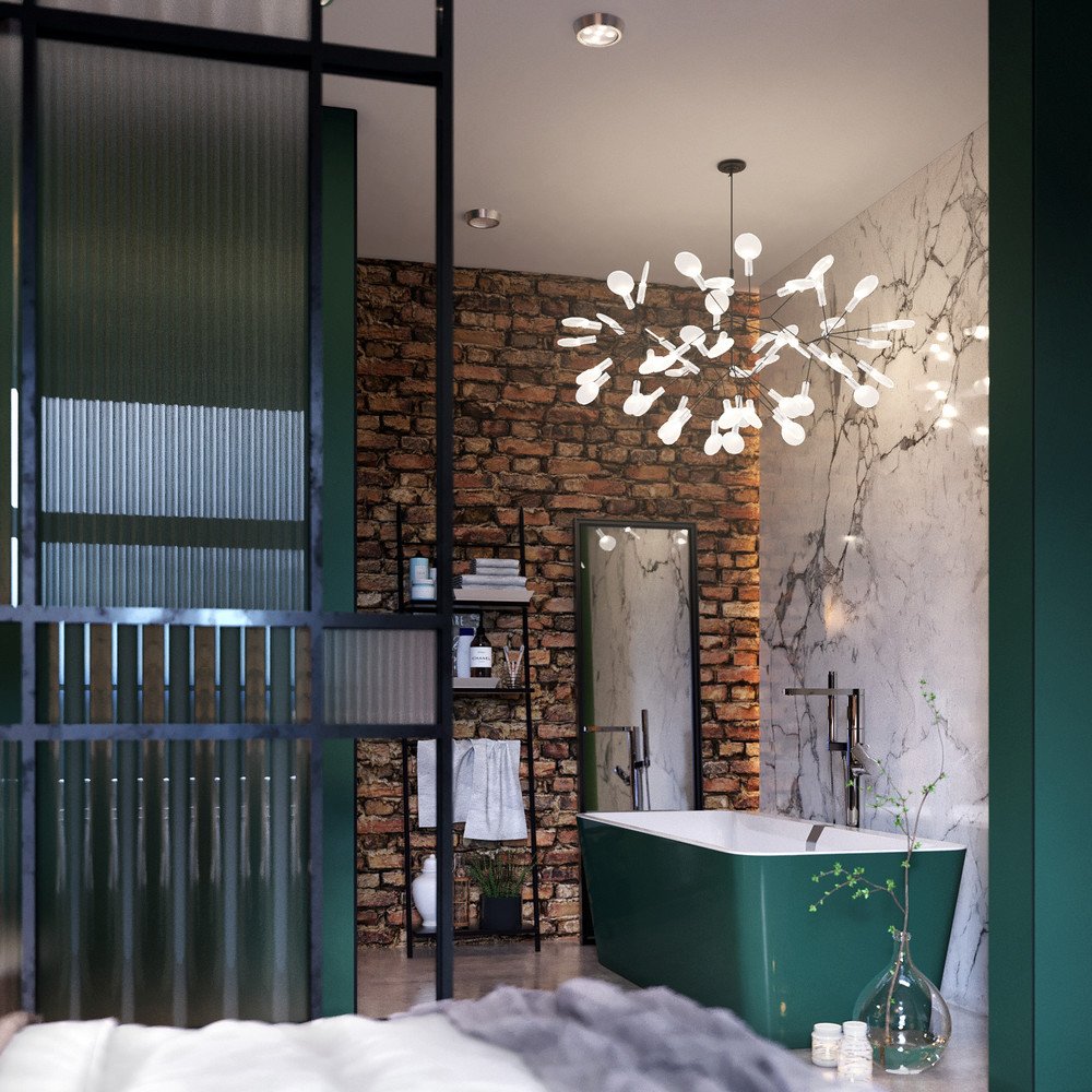 Ванная стиль лофт зеленая