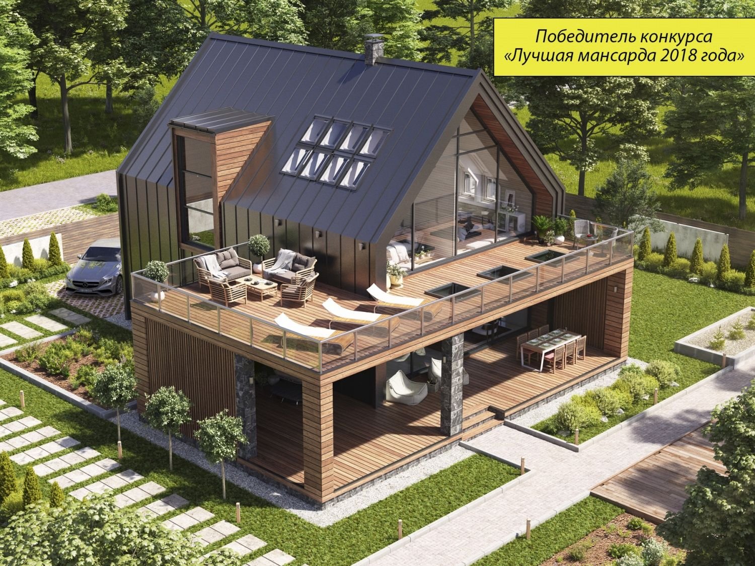 Дом в стиле лофт одноэтажный с односкатной крышей