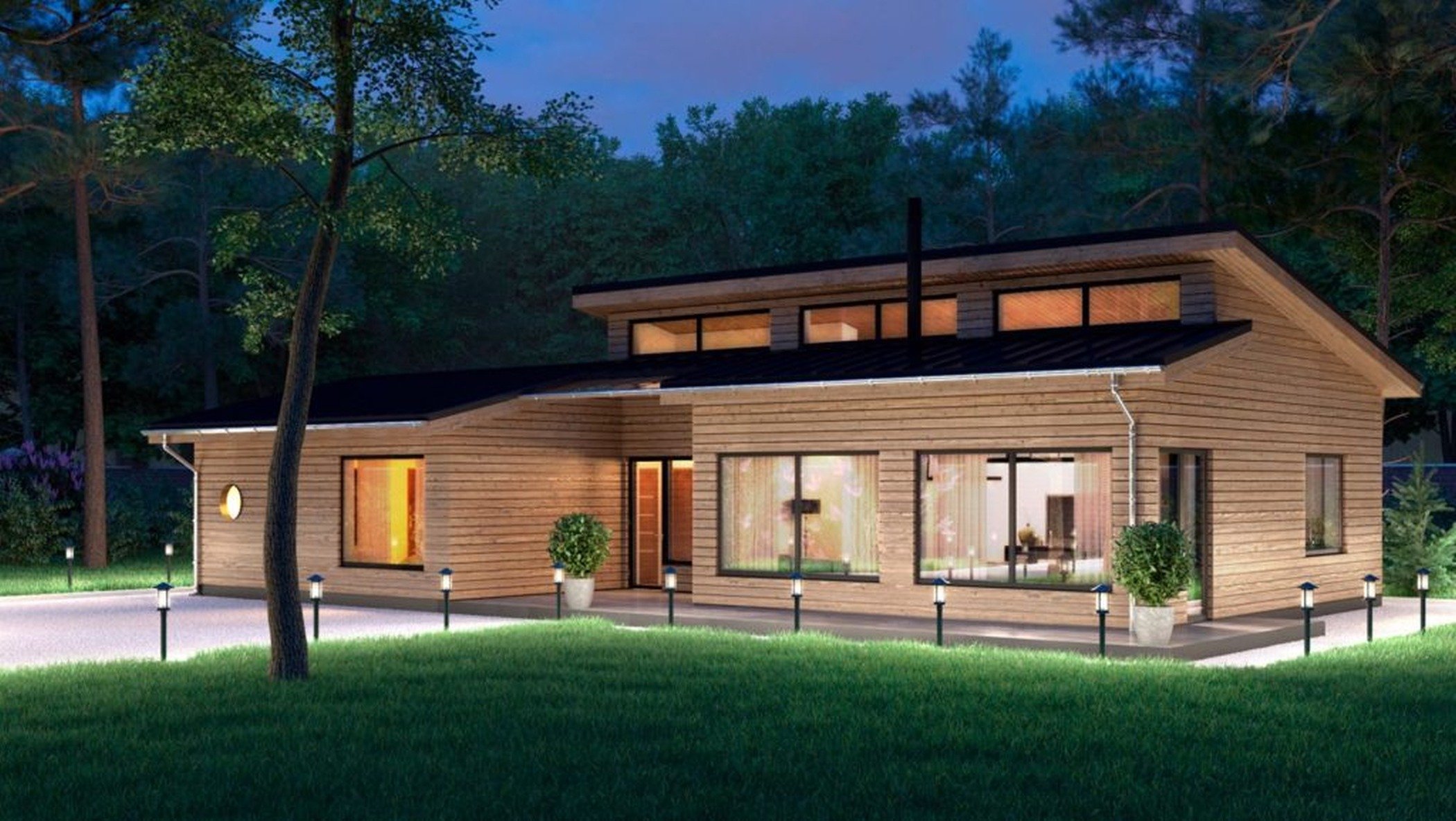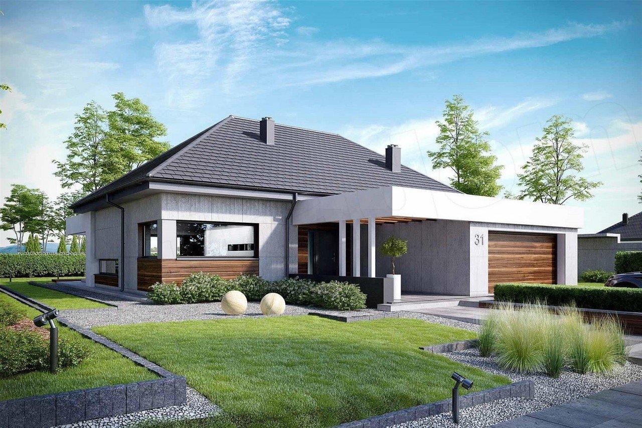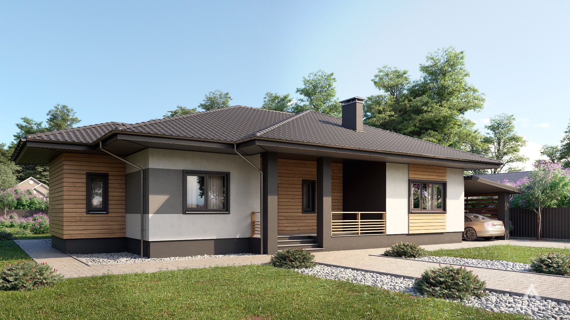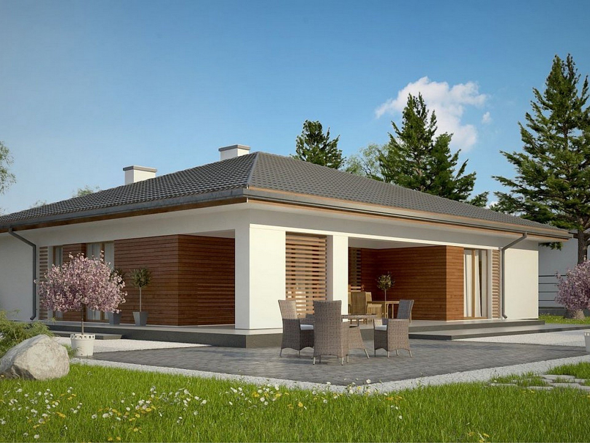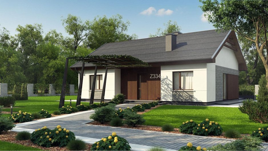 Одноэтажный дом 100 кв с разноуровневой крышей